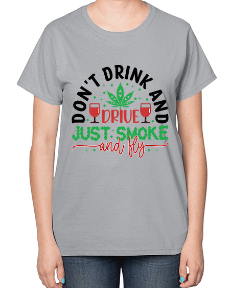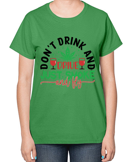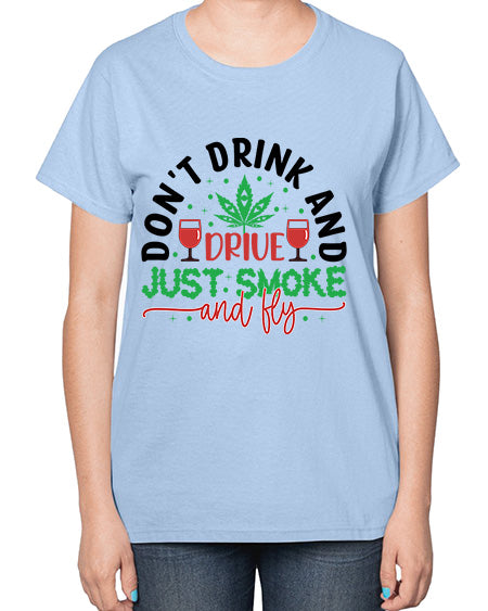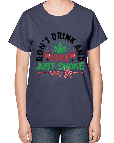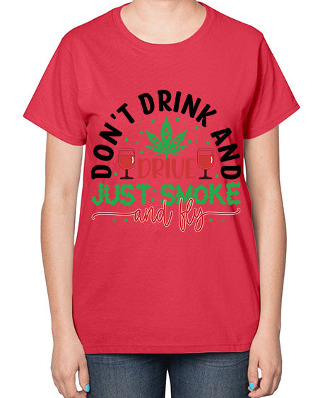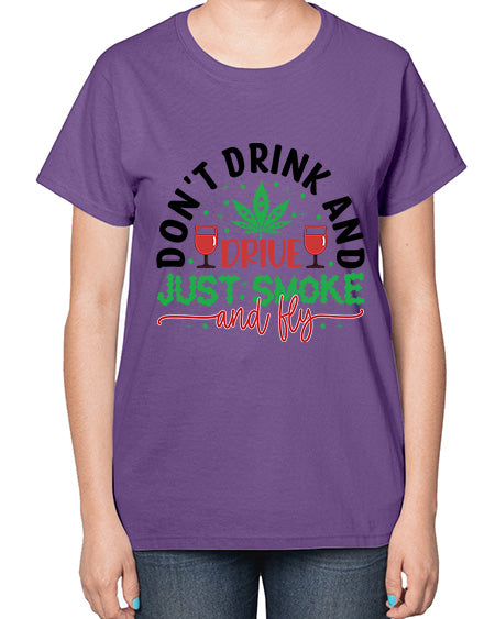 dont drink and drive just smoke and fly 385# - marijuana- Ladies T-Shirt