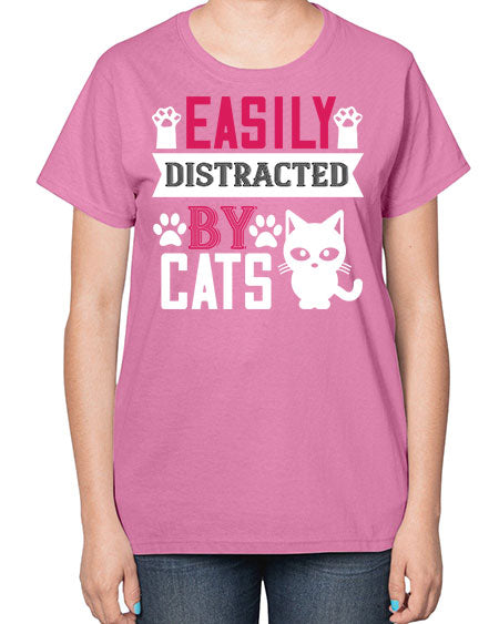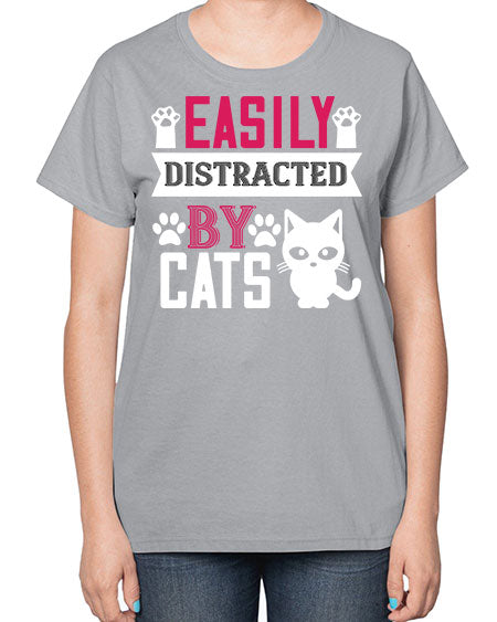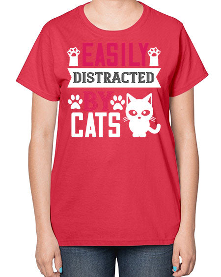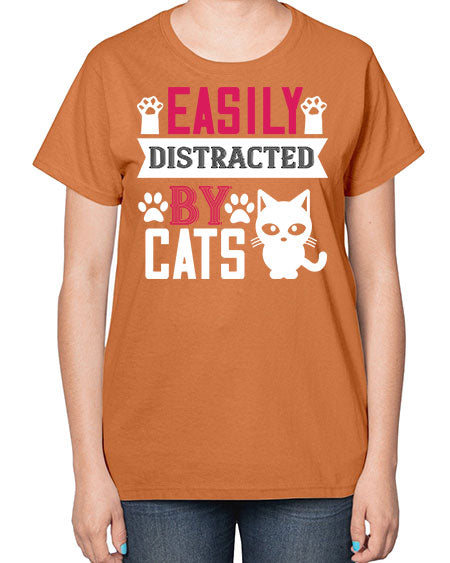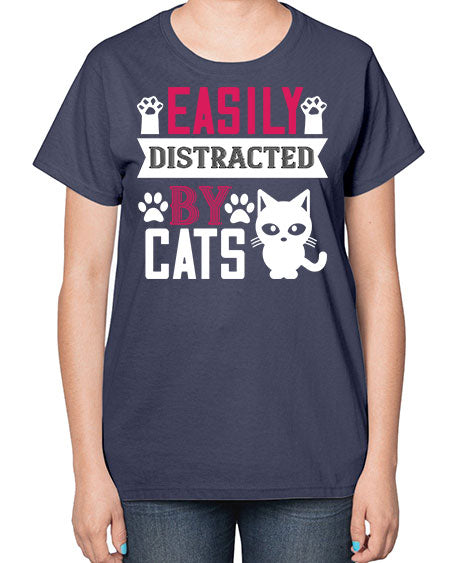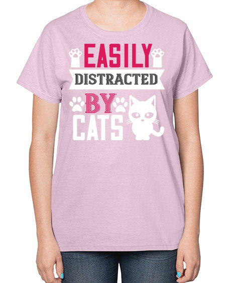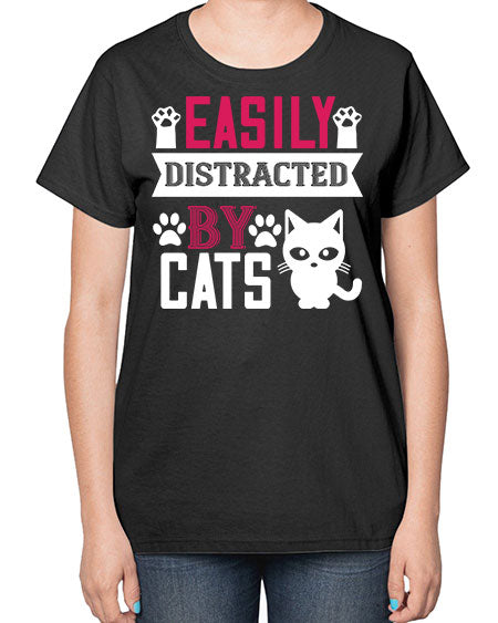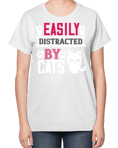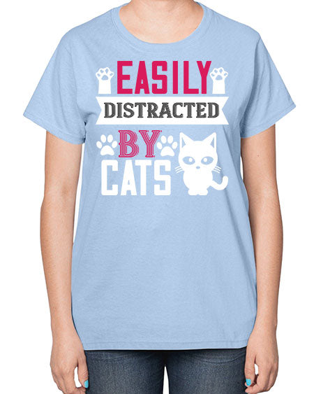 easily distracted by cats Style 47# - cats- Ladies T-Shirt
