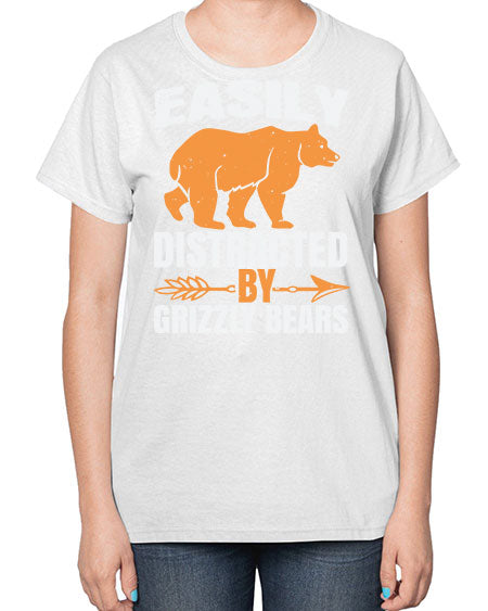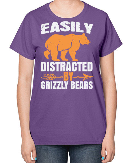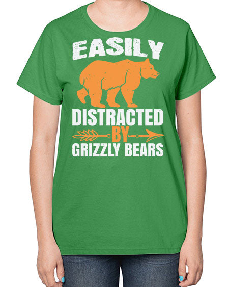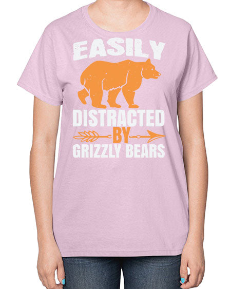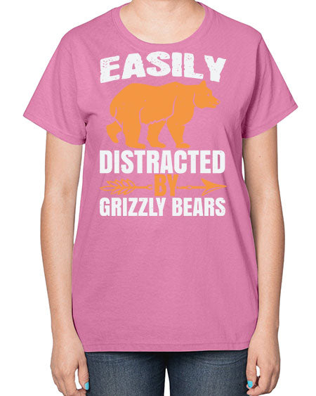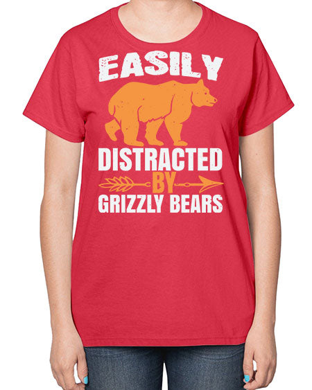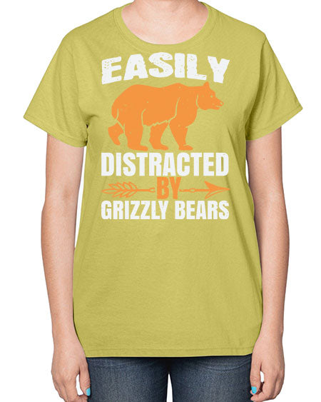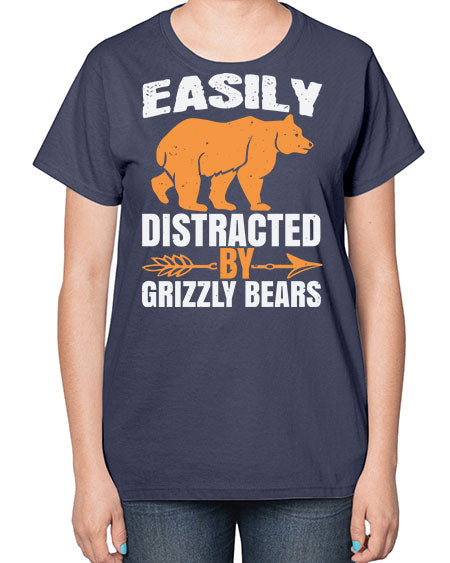 easily distracted by grizzly bears 107# - bears - animals- Ladies T-Shirt