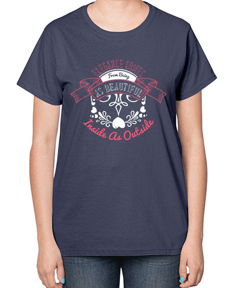 Elegance comes from being as beautiful inside as outside Style 213# -makeup Ladies T-Shirt