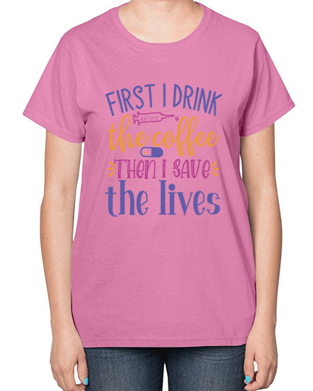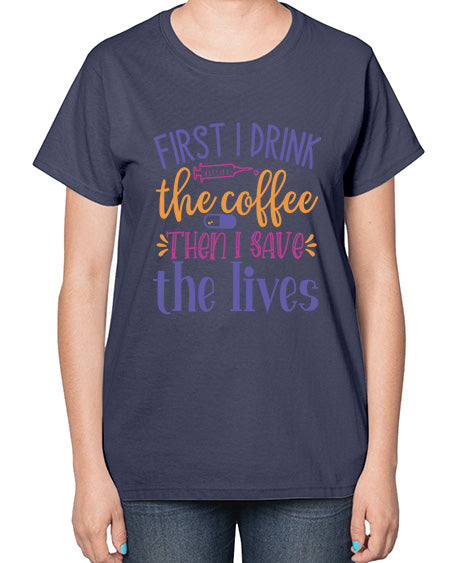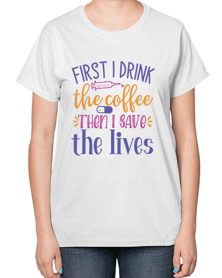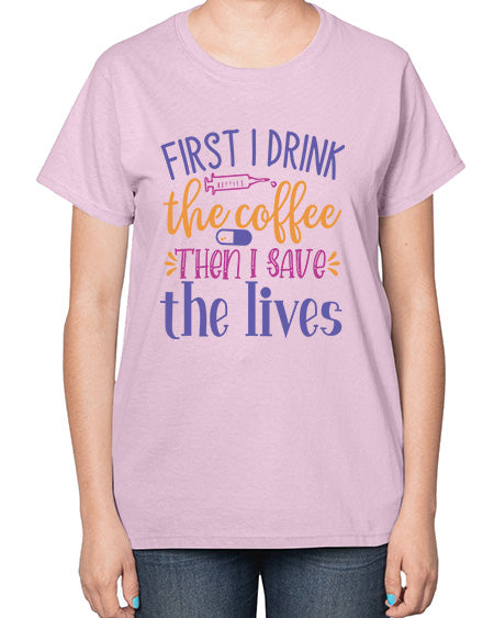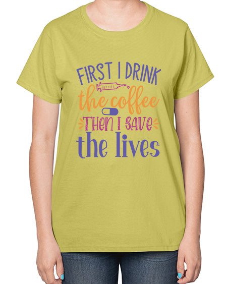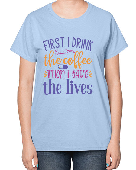 first i drink the coffee then i save the lives Style Style 803# - nurse- Ladies T-Shirt