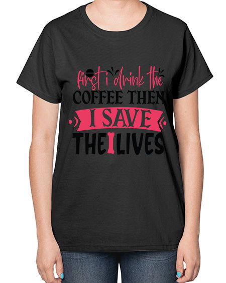 first i drink the coffee then i save the lives Style Style 804# - nurse- Ladies T-Shirt
