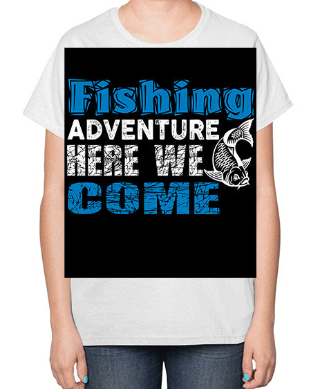 fishing adventure here we come png 52# - shark-fish- Ladies T-Shirt