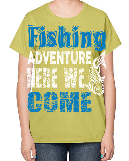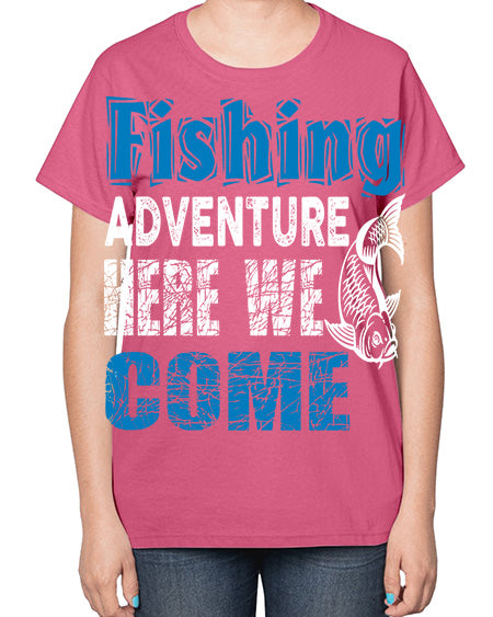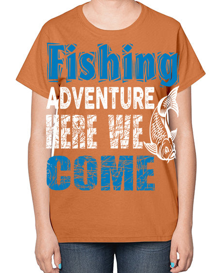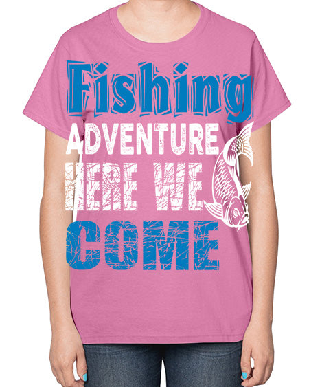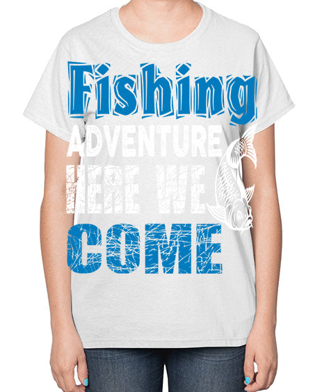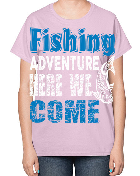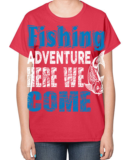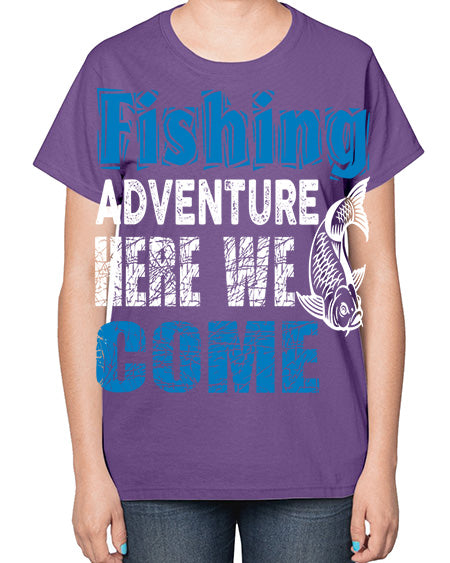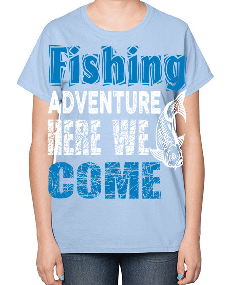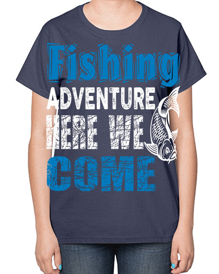 fishing adventure here we come png 79# - shark-fish- Ladies T-Shirt