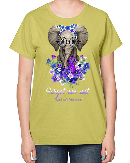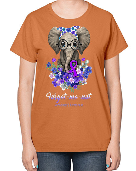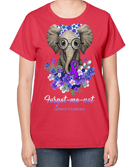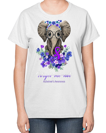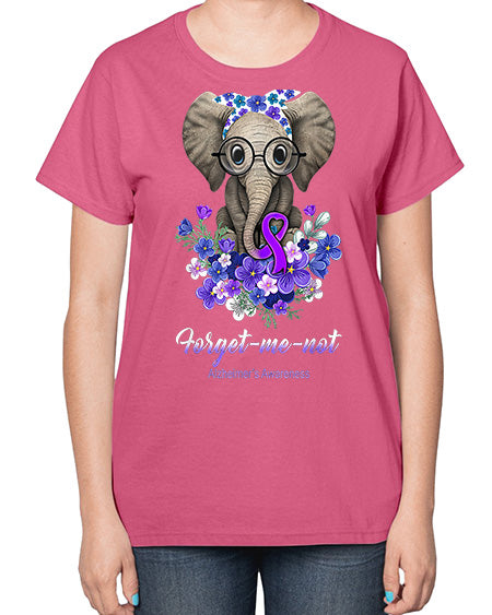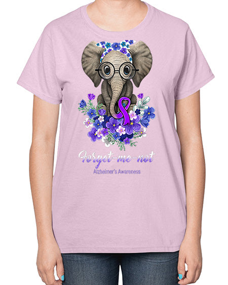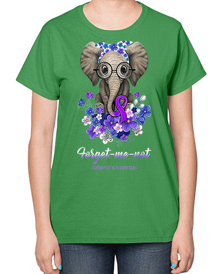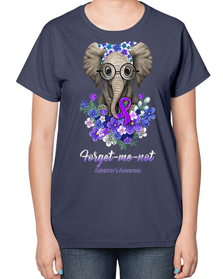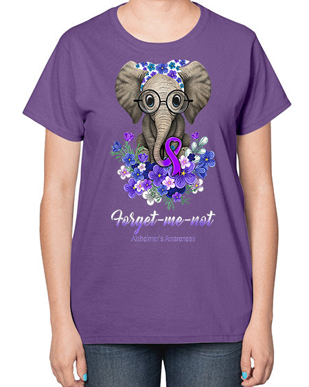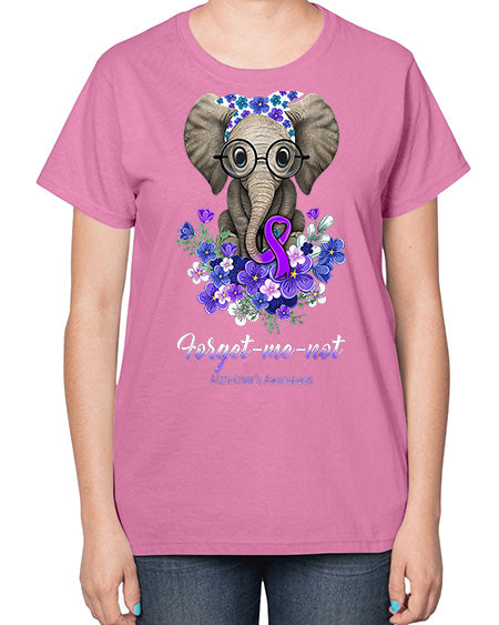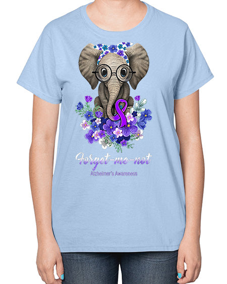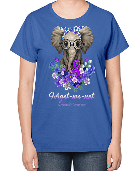 Forget me not Alzheimers Awareness Elephant Flower 150# - alzheimers- Ladies T-Shirt