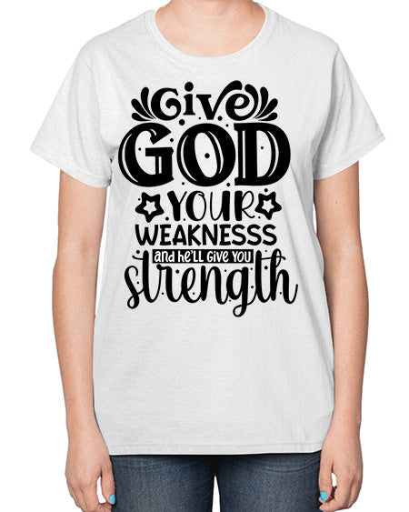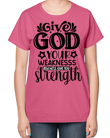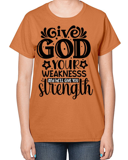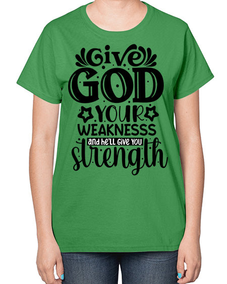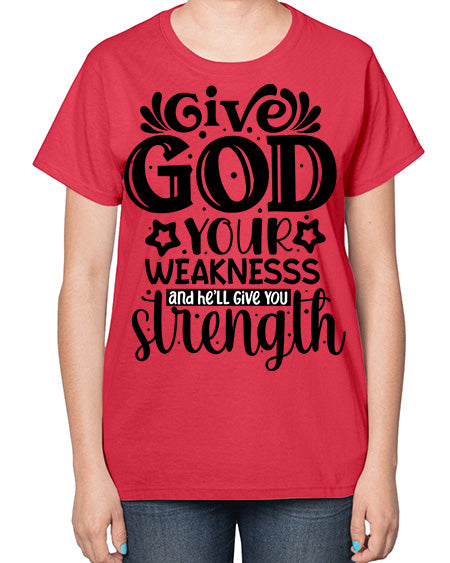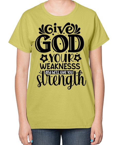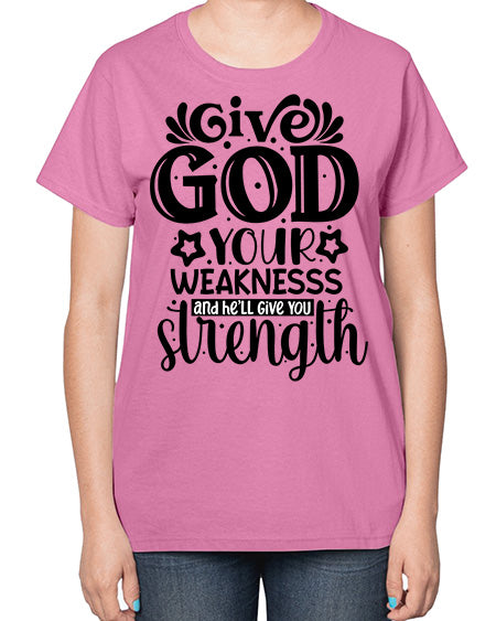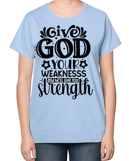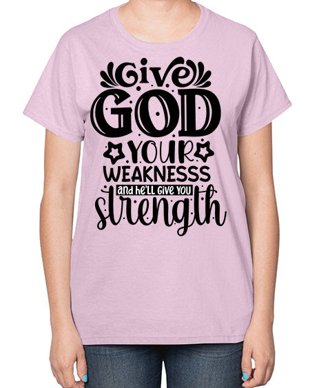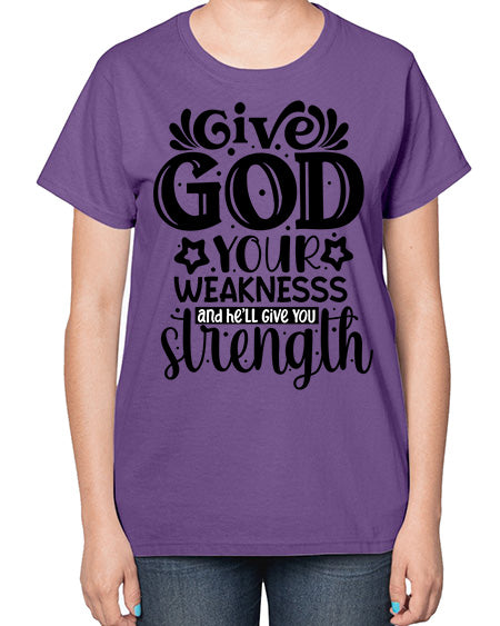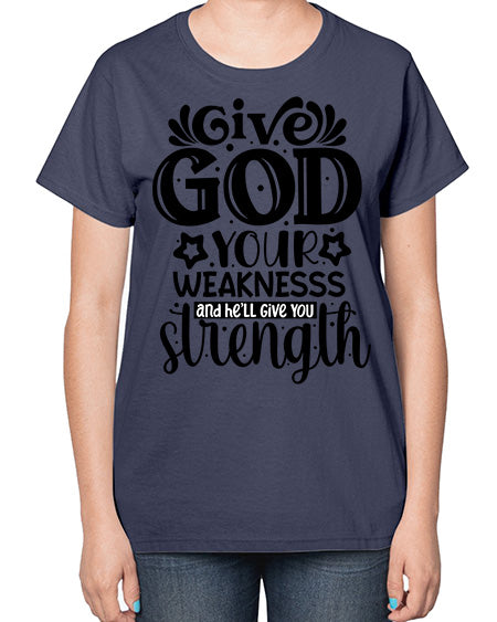 Give god your weaknesss and hell give you strength Style 37# - Sub- Ladies T-Shirt Contoured fit, machine washable, cotton blend - Preshrunk jersey knit
