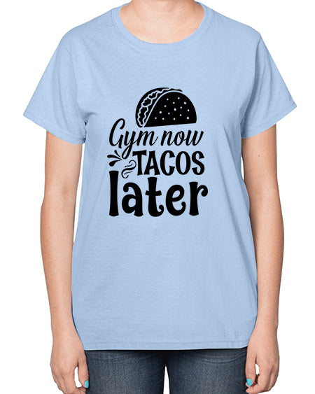 google-site-verification=jVrHOkW2AsgL_ozwUikqFQE6-Ke6U43Z8aLcUbXT5TE Gym now tacos later 244# - gym- Ladies T-Shirt – Tshirt Unlimited
