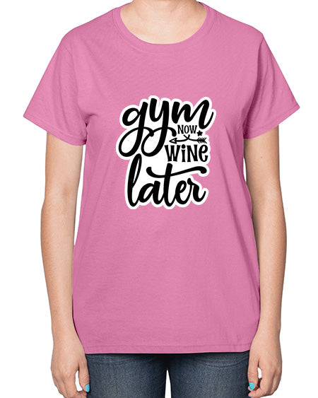 gym now wine later 247# - gym- Ladies T-Shirt