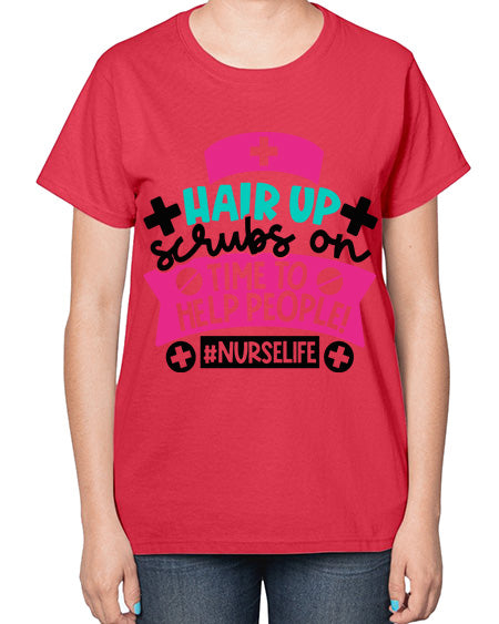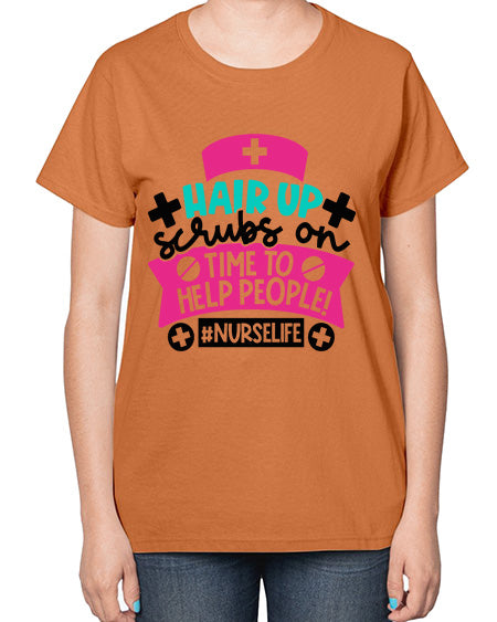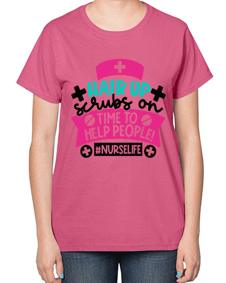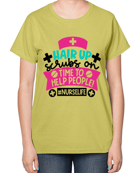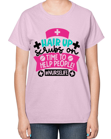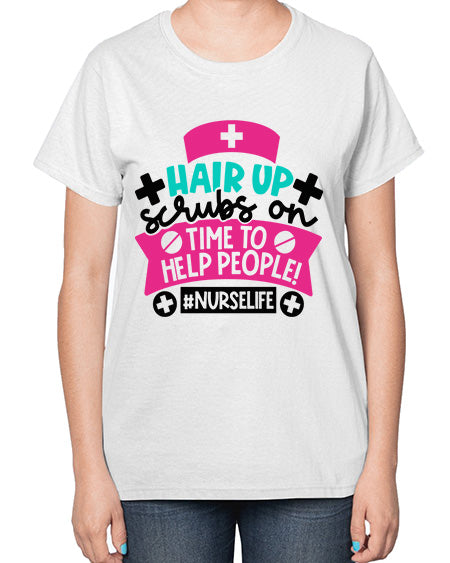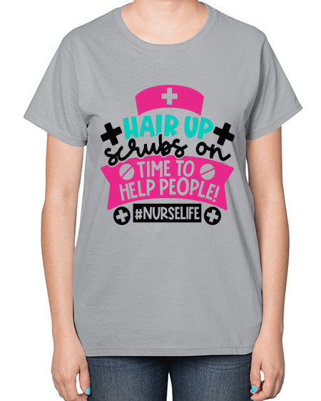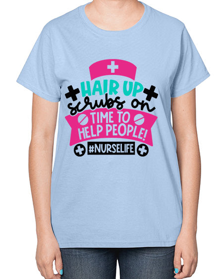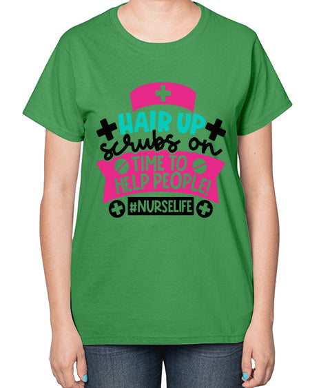 Hair Up Scrubs On Time To Help People Nurselife Style Style 827# - nurse- Ladies T-Shirt