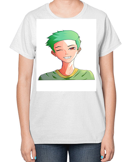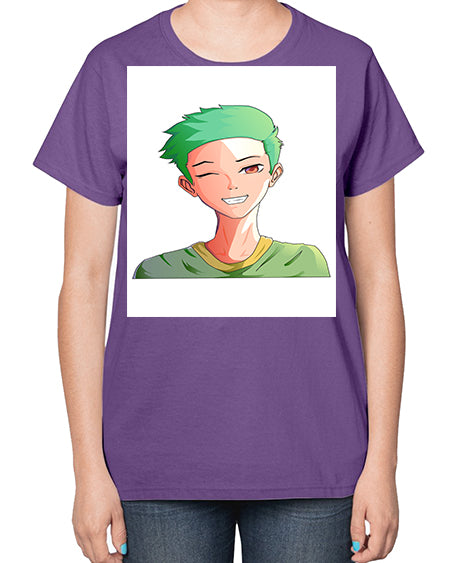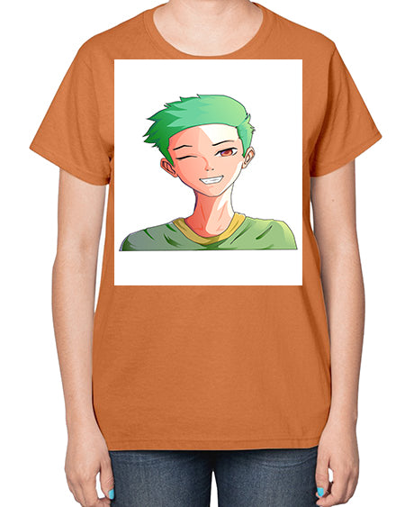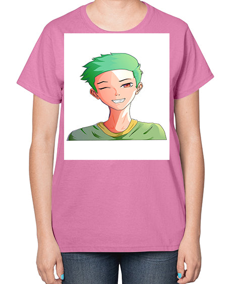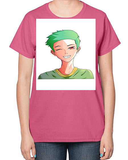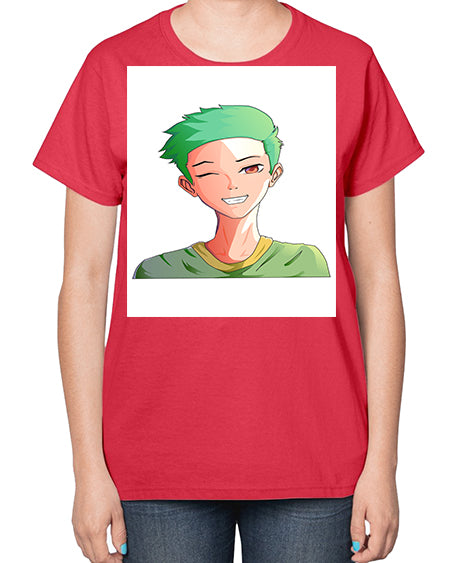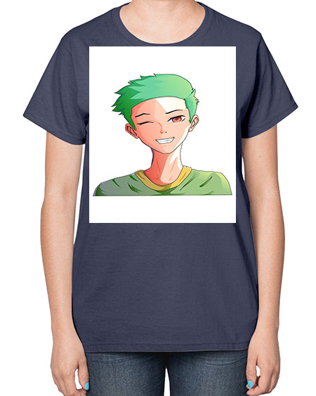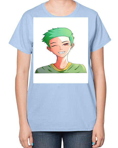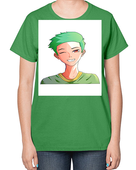 Handsome boy green hair wearing green shirt 35# - anime- Ladies T-Shirt
