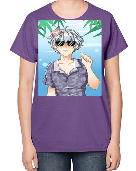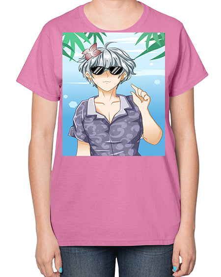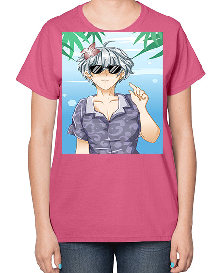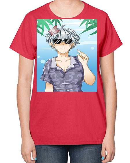 Handsome boy with sunglasses on the beach in summer holiday 44# - anime- Ladies T-Shirt