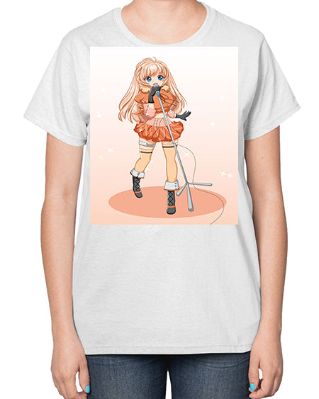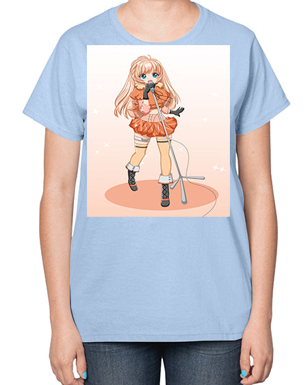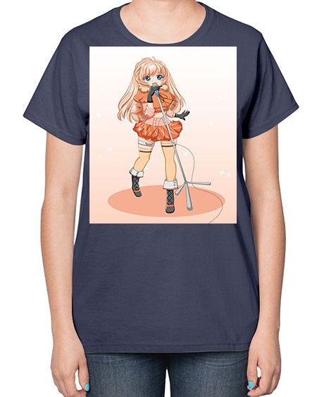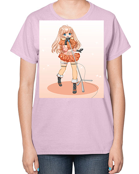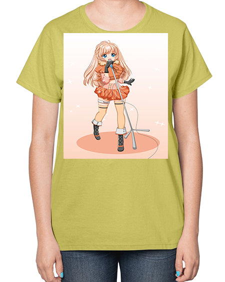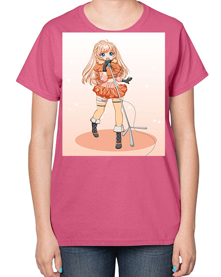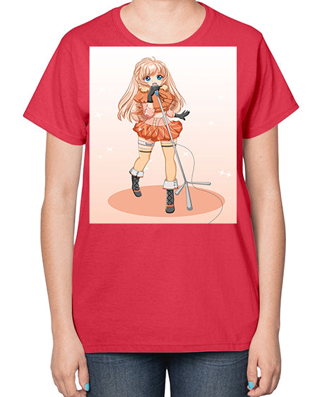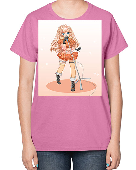 Happy and beautiful singer woman with microphone 160# - anime- Ladies T-Shirt
