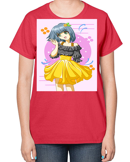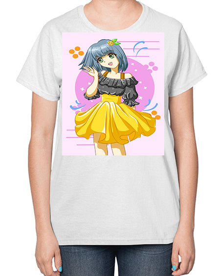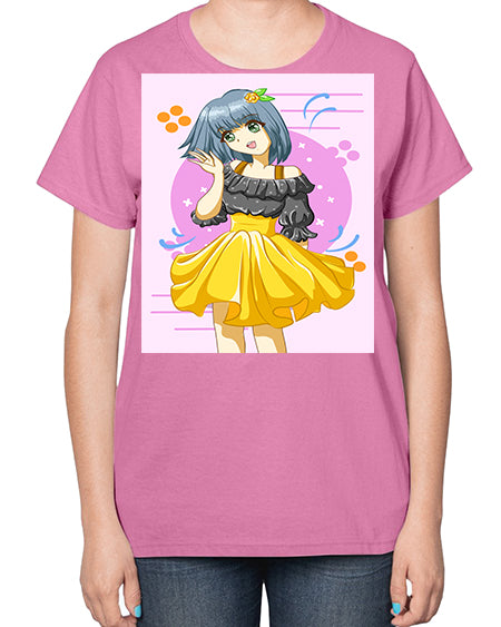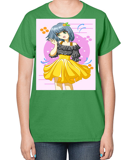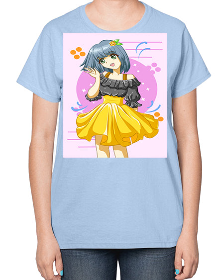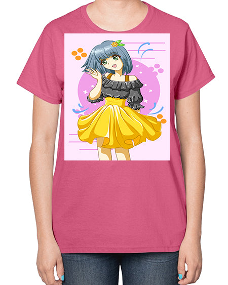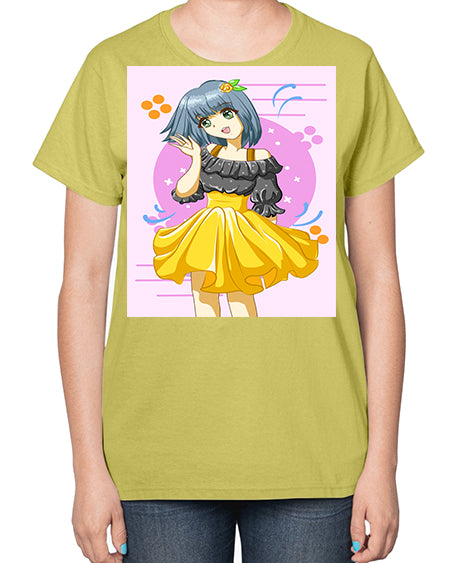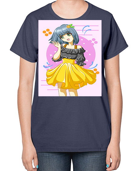 Happy and funny girl with black yellow dress in summer 41# - anime- Ladies T-Shirt