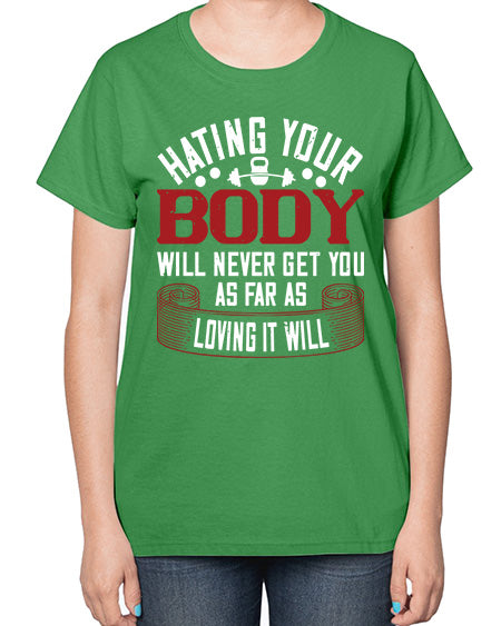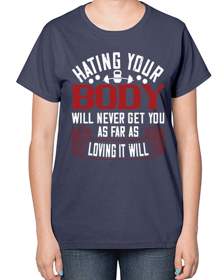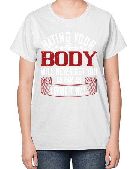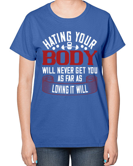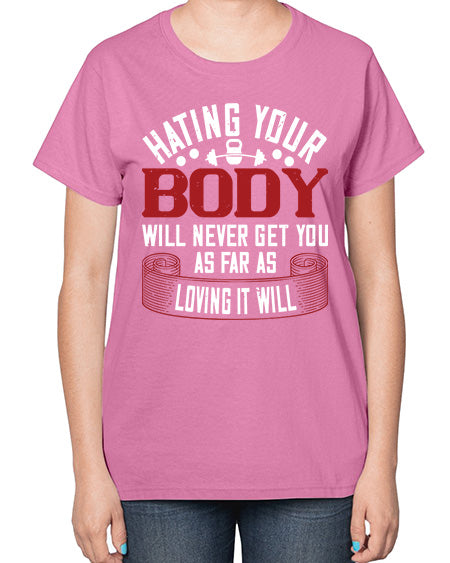 • hating your body will naver get you as far as loving it will 30# - gym- Ladies T-Shirt