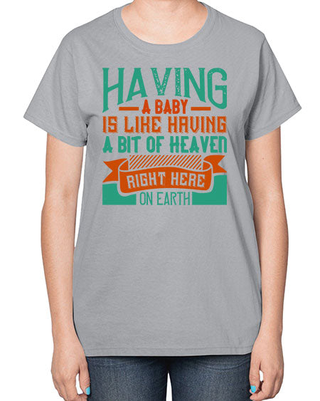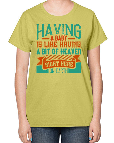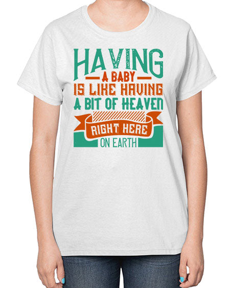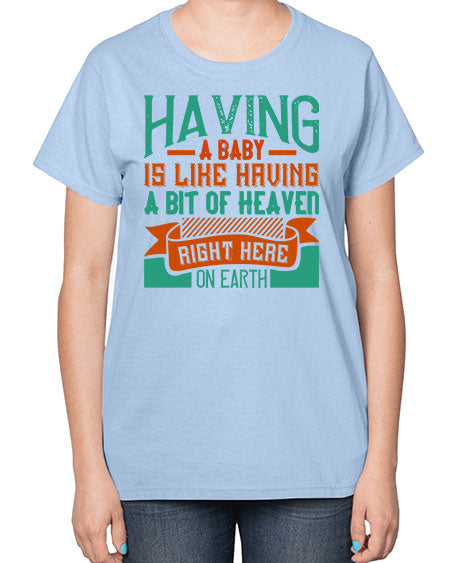 Having a baby is like having a bit of heaven right here on earth Style 326# - baby- Ladies T-Shirt