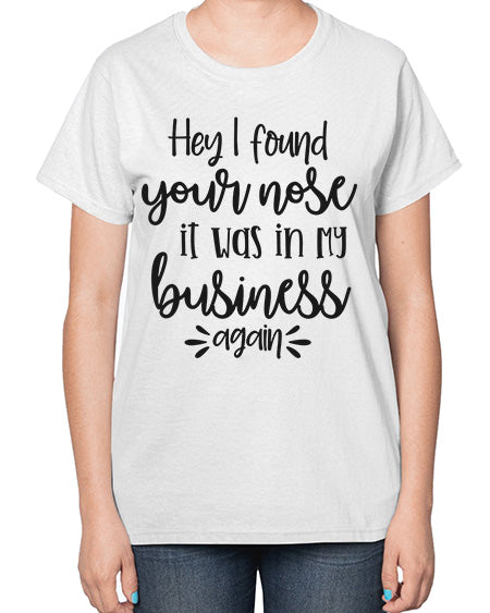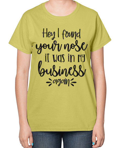 hey I found your nose it was in my business again 520# - graphic- Ladies T-Shirt