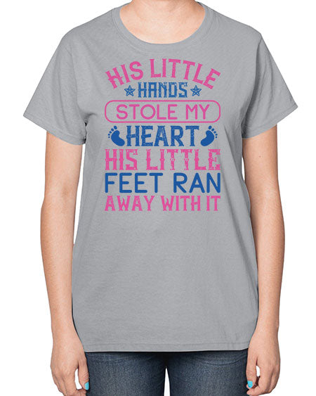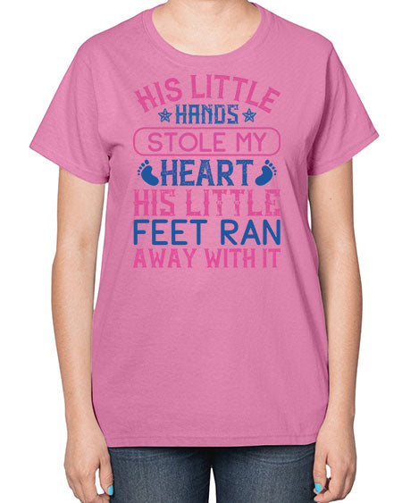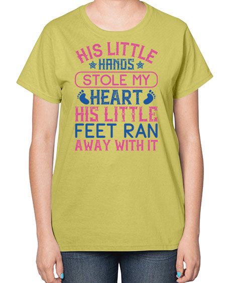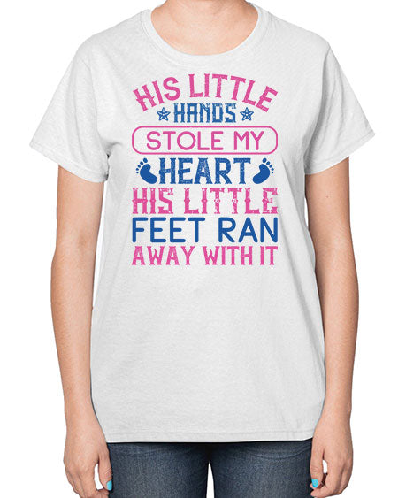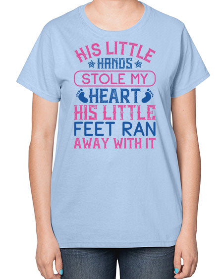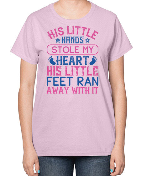 His little hands stole my heart His little feet ran away with it Style 335# - babies- Ladies T-Shirt