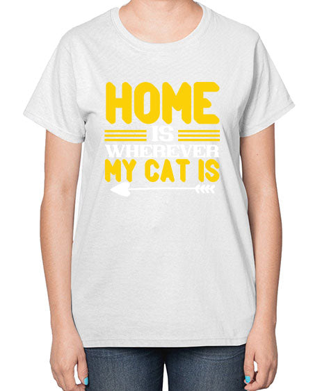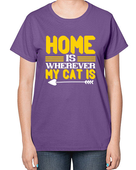 home is wherever my cat is Style 50# - cats- Ladies T-Shirt