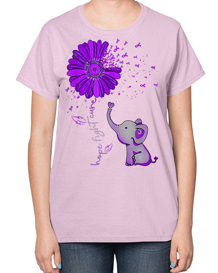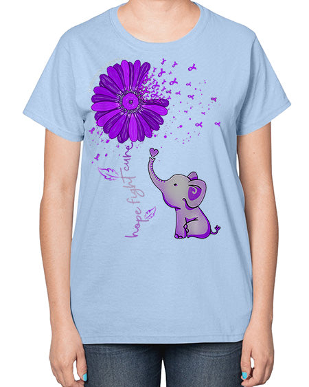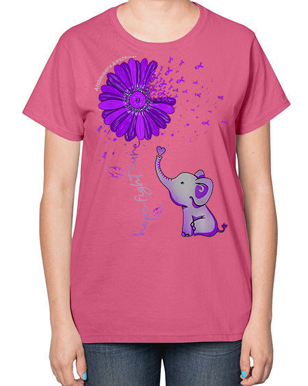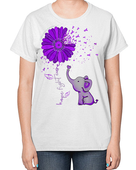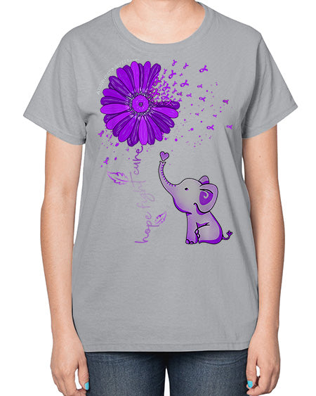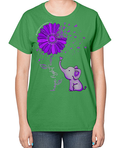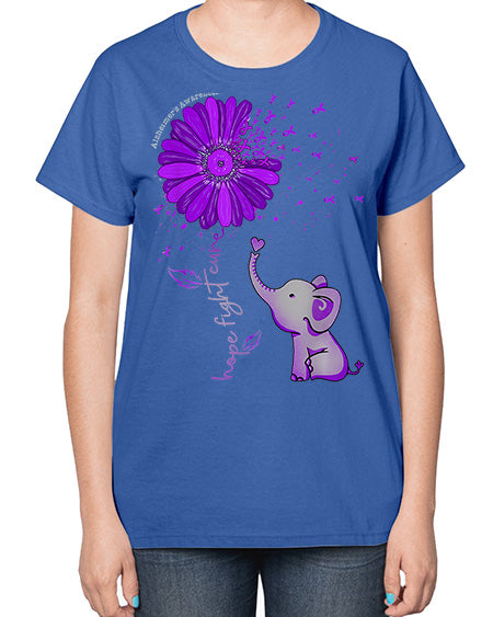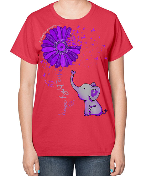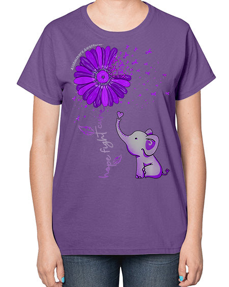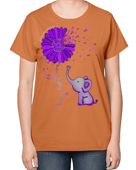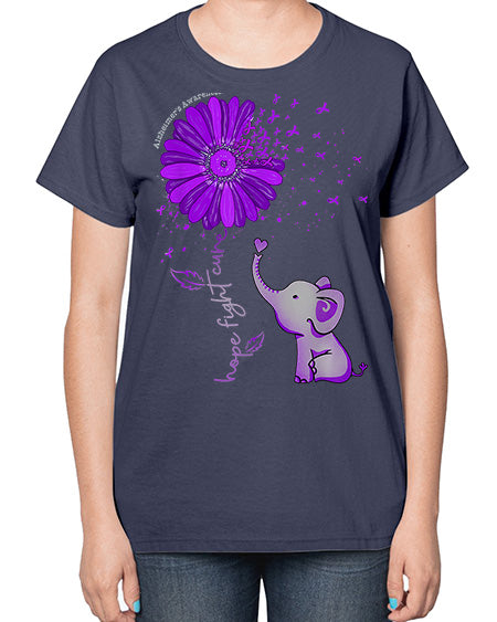 Hope Fight Cure Elephant Alzheimers Purple Ribbon 160# - alzheimers- Ladies T-Shirt