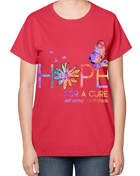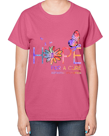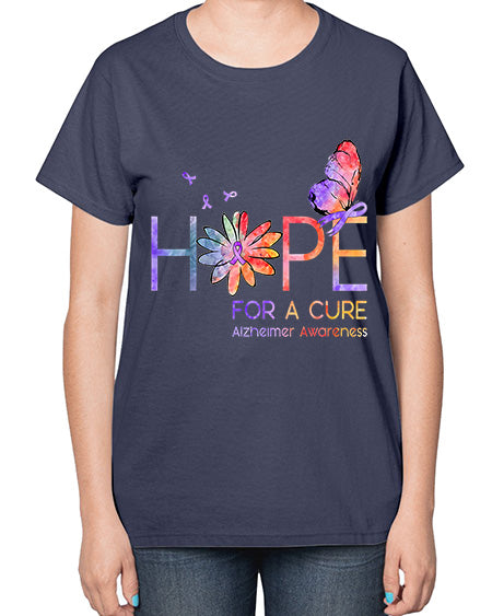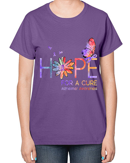 Hope For A Cure Alzheimer Awareness Flower 162# - alzheimers- Ladies T-Shirt
