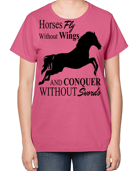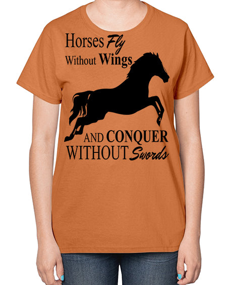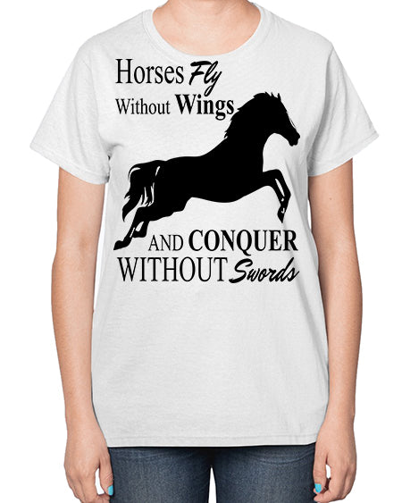 horses fly without wings and conquer without swords - horse- Ladies T-Shirt