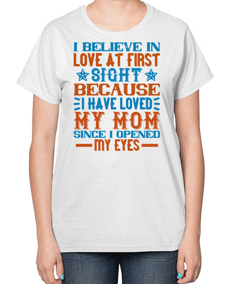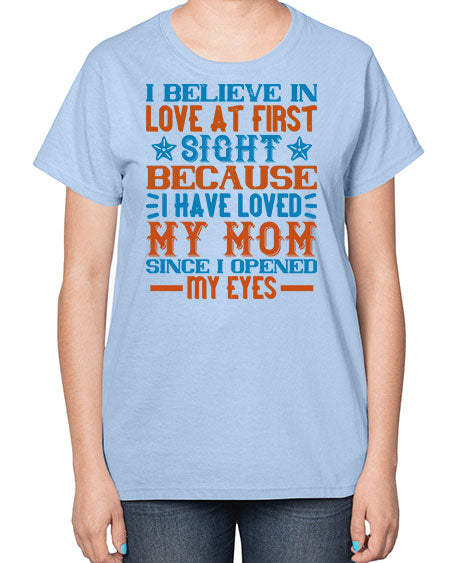 I believe in love at first sight because I have loved my mom since I opened my eyes Style 338# - babies- Ladies T-Shirt