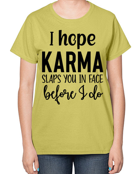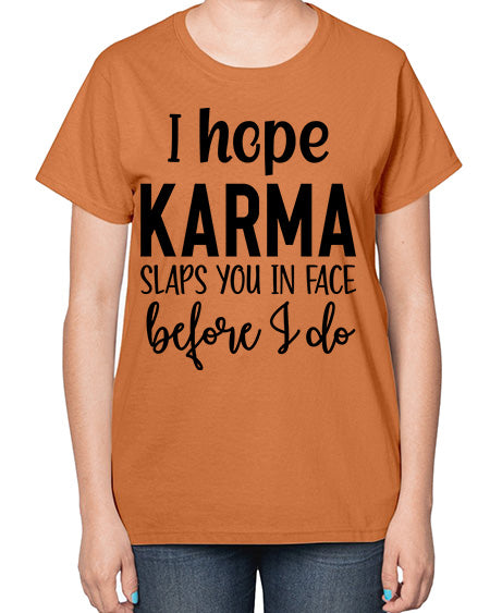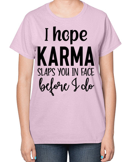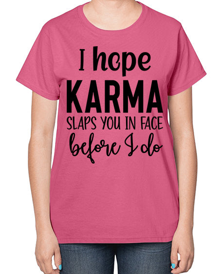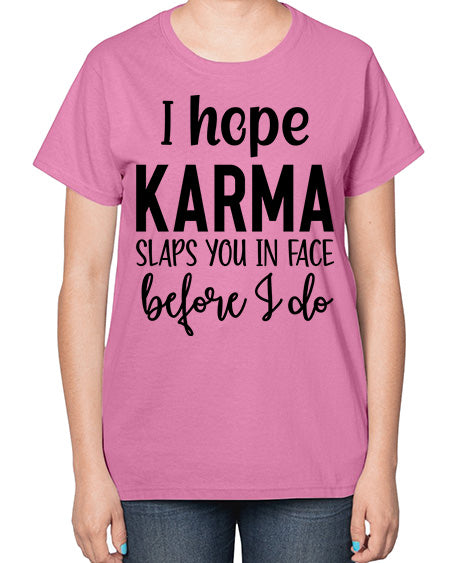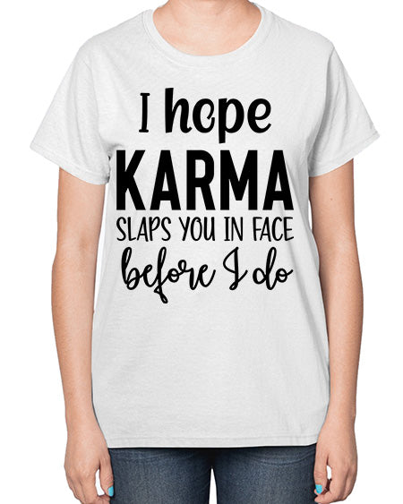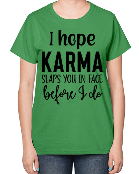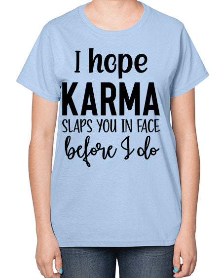 i hope karma slaps you in face before i do 566# - graphic- Ladies T-Shirt