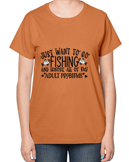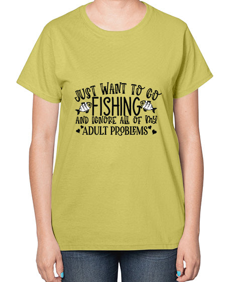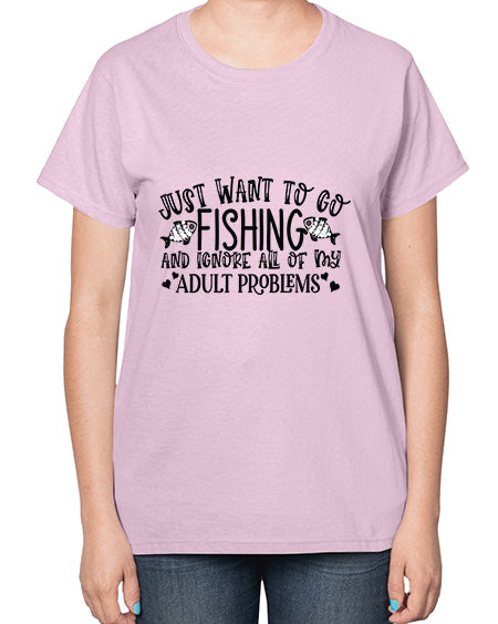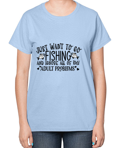 I Just Want To Go Fishing and ignore all of my adult problems 36# - funny- Ladies T-Shirt
