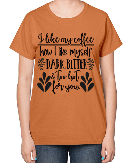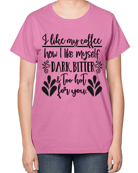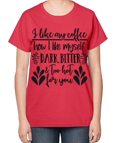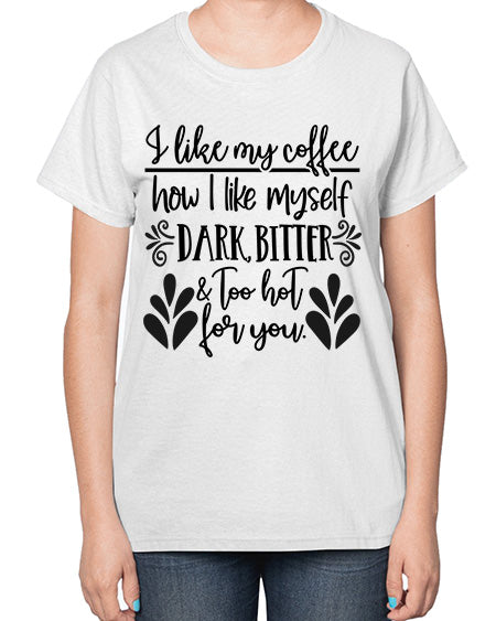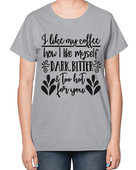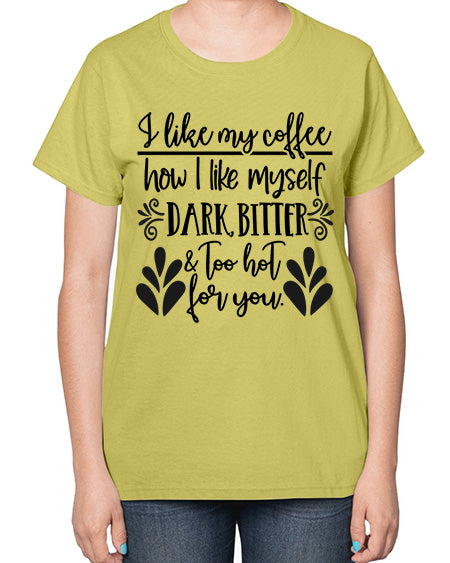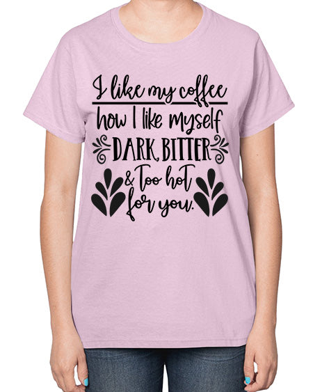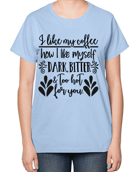 google-site-verification=jVrHOkW2AsgL_ozwUikqFQE6-Ke6U43Z8aLcUbXT5TE I like my coffee how I like myself 571# - funny- Ladies T-Shirt – Tshirt Unlimited