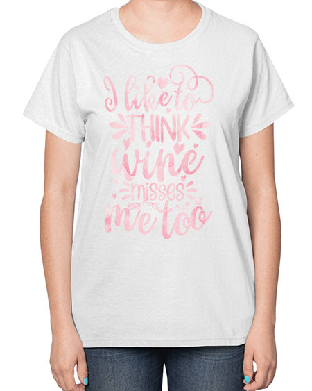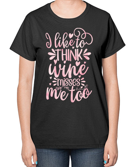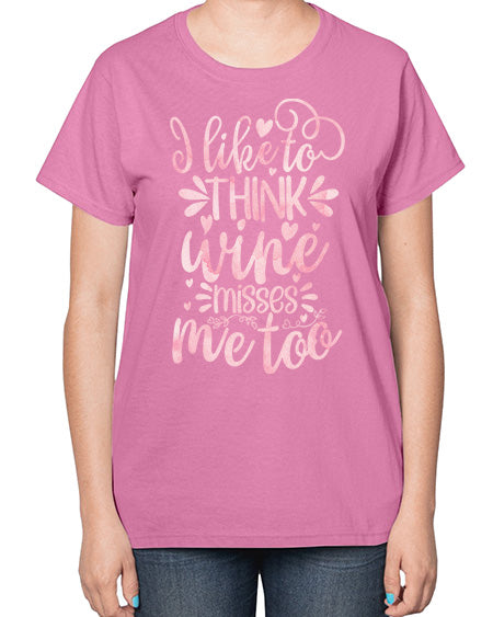 i like to think wine misses me too 1129# - wine- Ladies T-Shirt