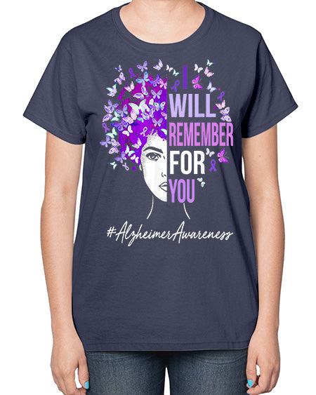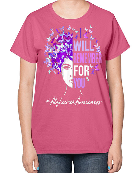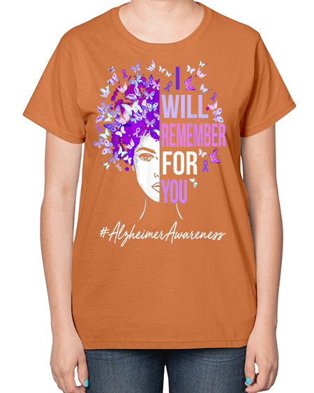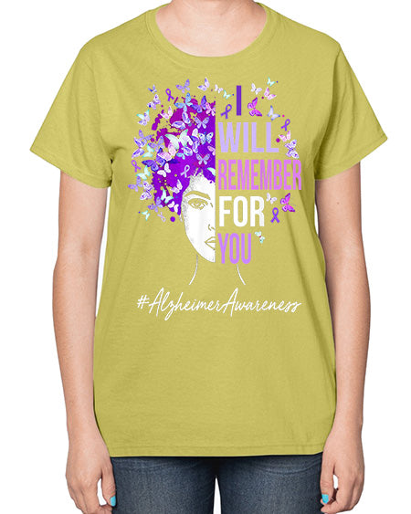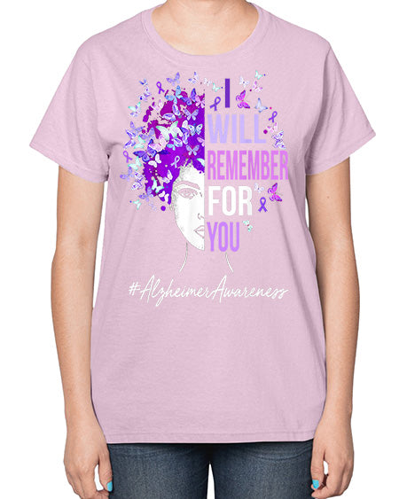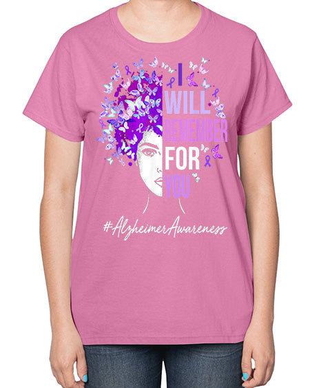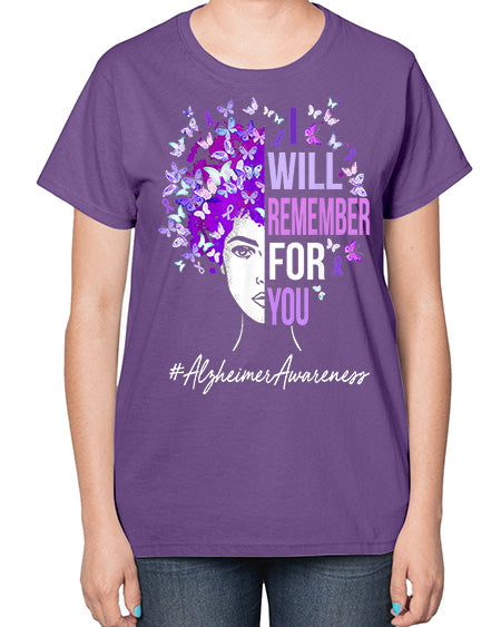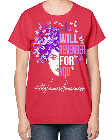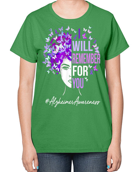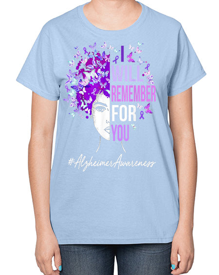 I Will Remember For You Alzheimer Awareness Womens Butterfly 180# - alzheimers- Ladies T-Shirt