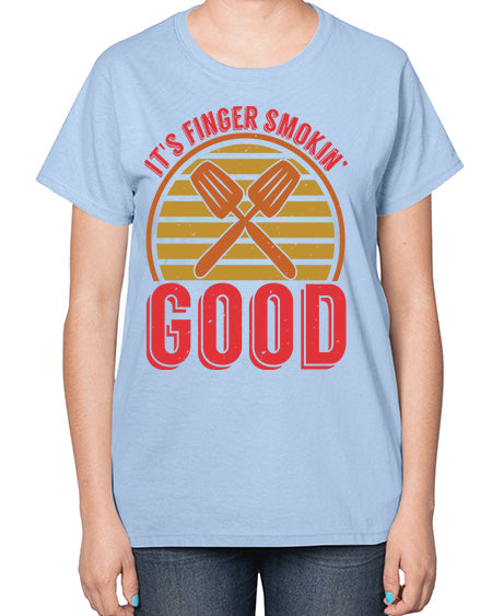 google-site-verification=jVrHOkW2AsgL_ozwUikqFQE6-Ke6U43Z8aLcUbXT5TE its finger smokin good 286# - bbq- Ladies T-Shirt – Tshirt Unlimited