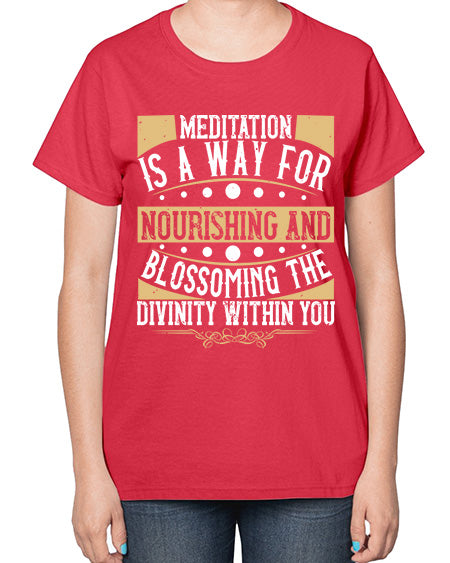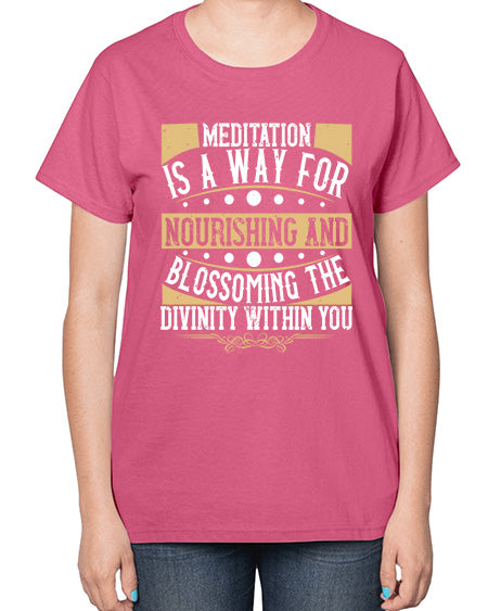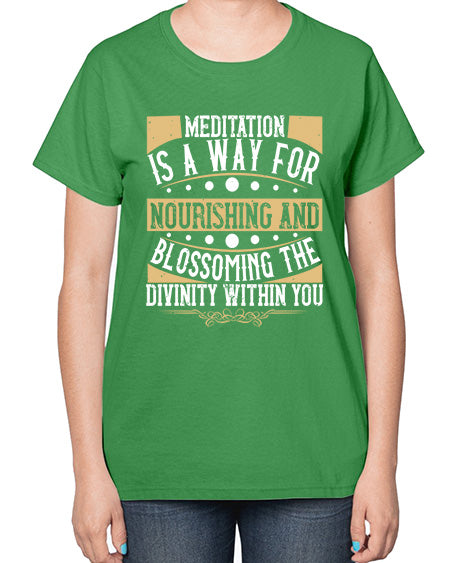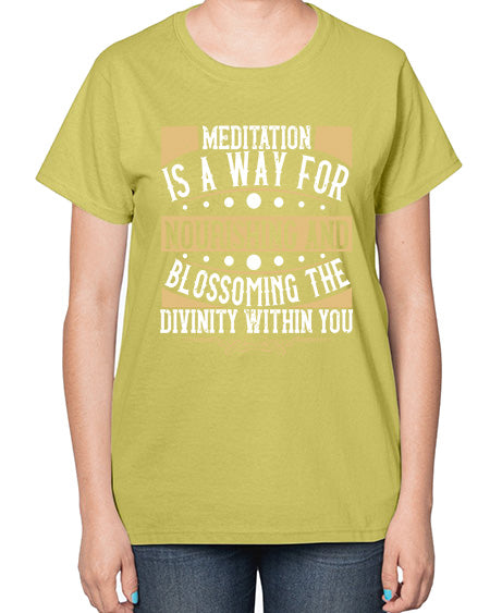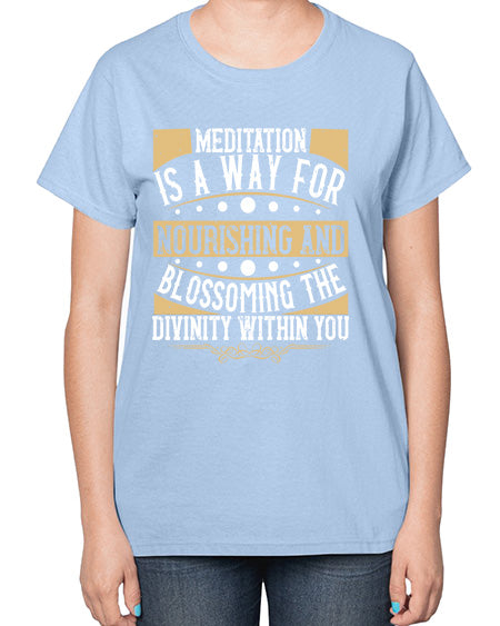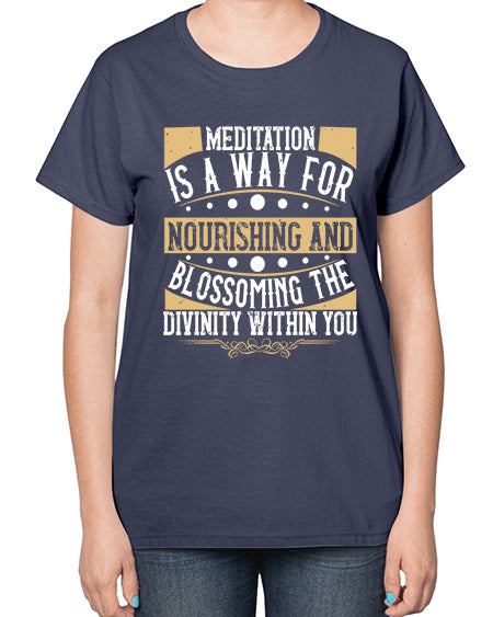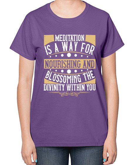 meditation is a way for nourishing and blossoming the divinity within you 422# - yoga- Ladies T-Shirt