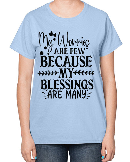 my worries are few because my blessings are many Style 84# - motivation- Ladies T-Shirt