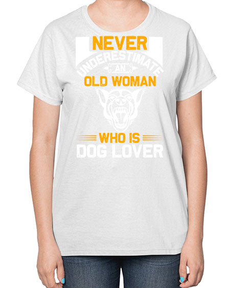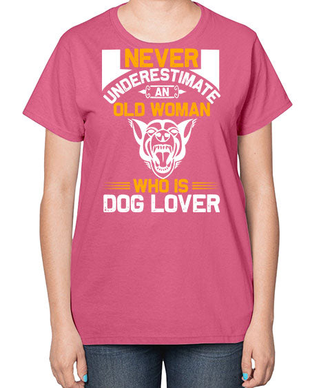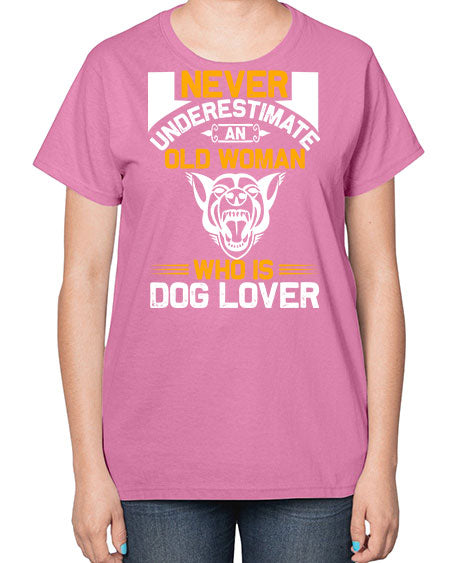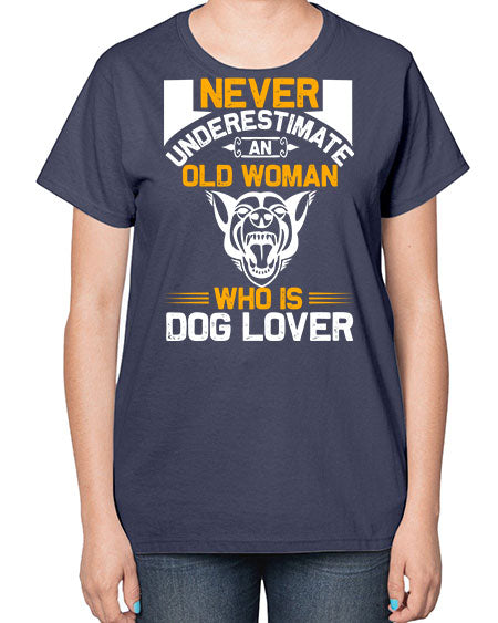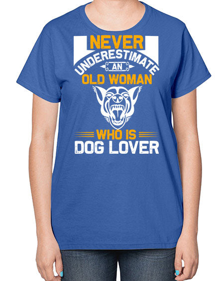 never underestimate an old woman who is dog lover Style 6524# - dogs- Ladies T-Shirt