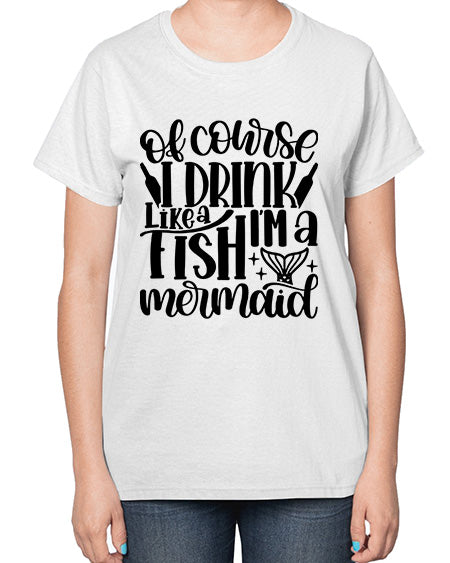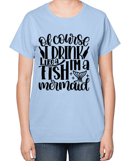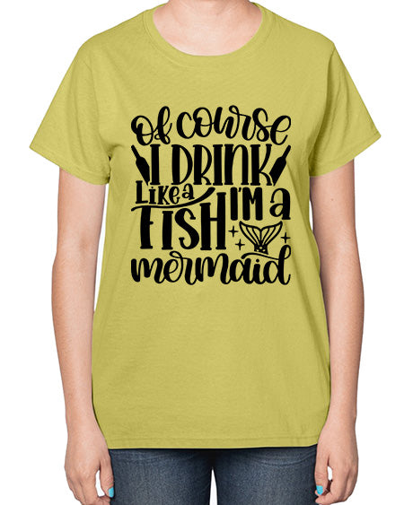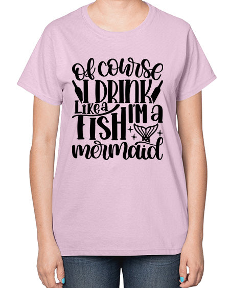 of course i drink like a fish 1452# - wine- Ladies T-Shirt Contoured fit, machine washable, cotton blend - Preshrunk jersey knit