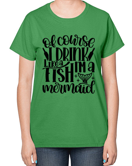 of course i drink like a fish 1452# - wine- Ladies T-Shirt