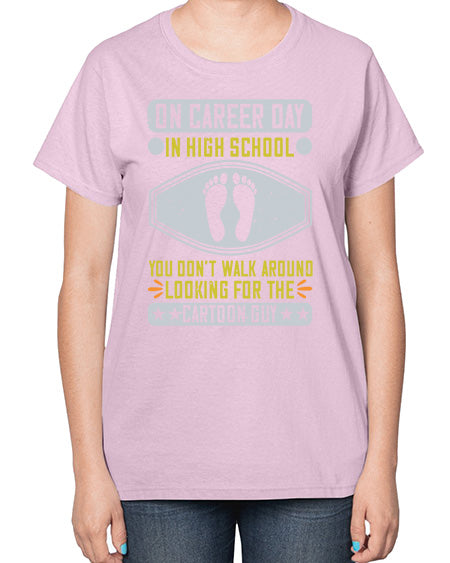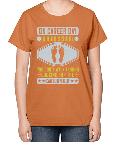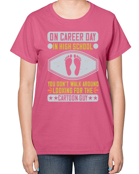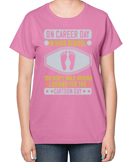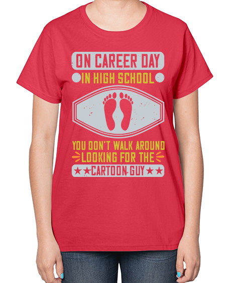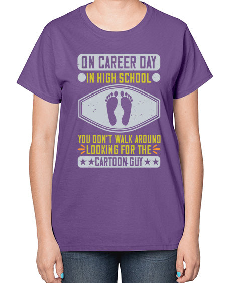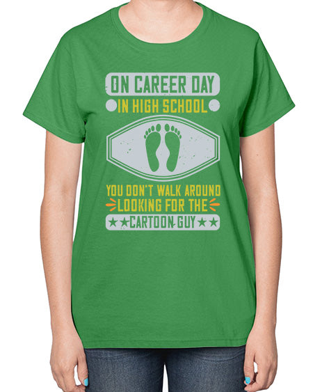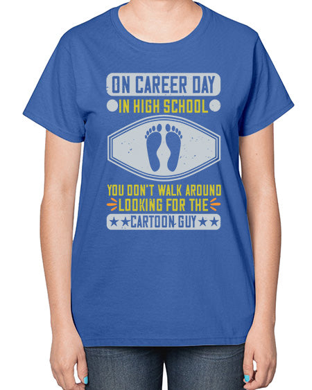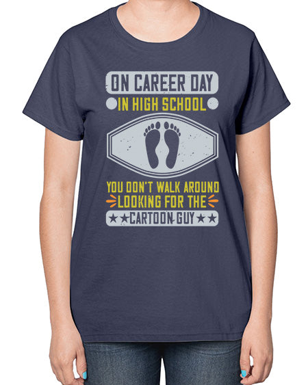 on career day in high school you dont walk around looking for the cartoon guy 484# - walking- Ladies T-Shirt