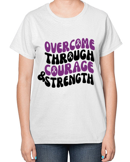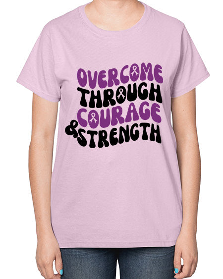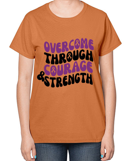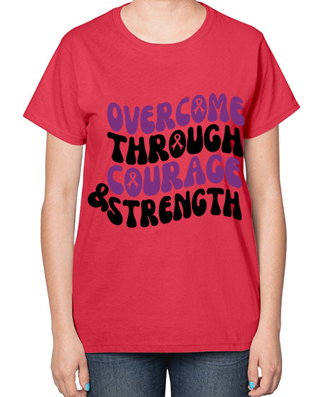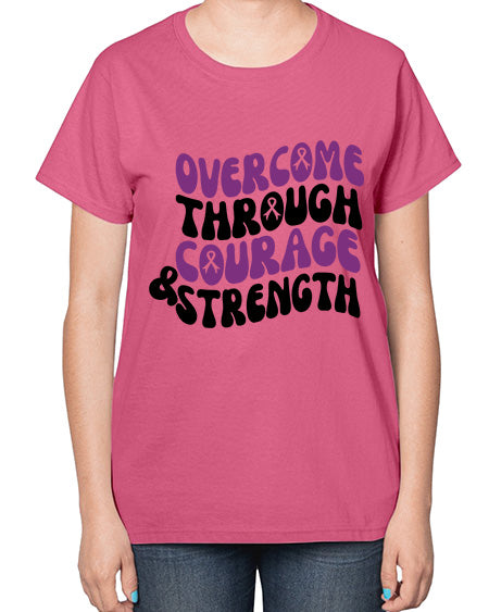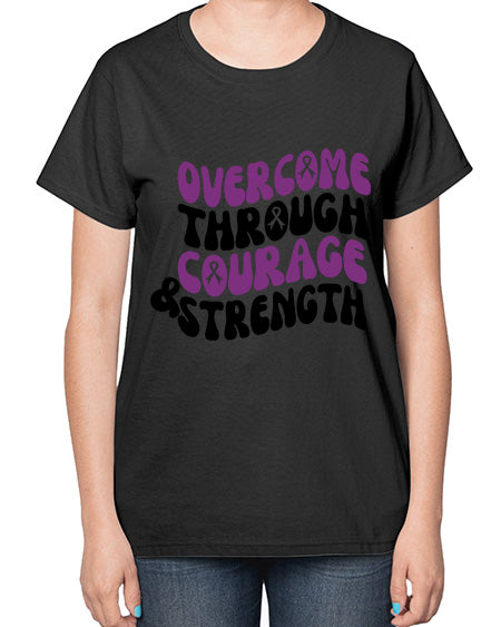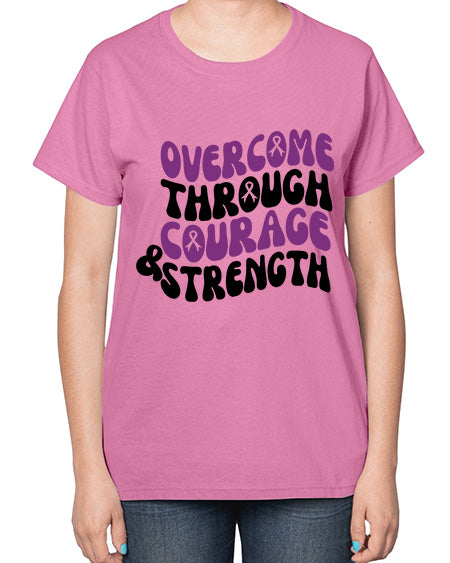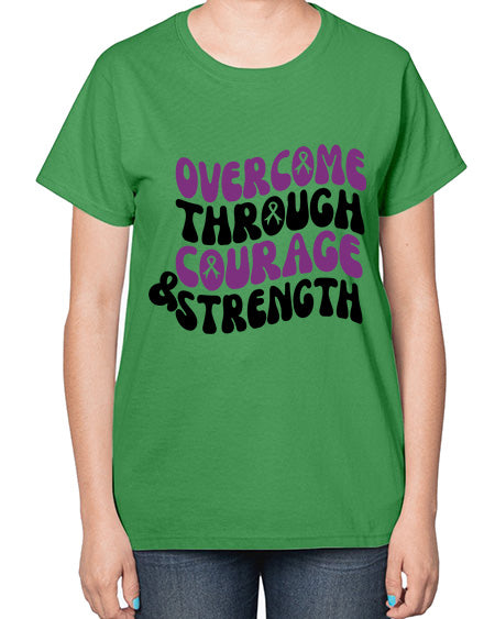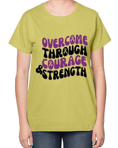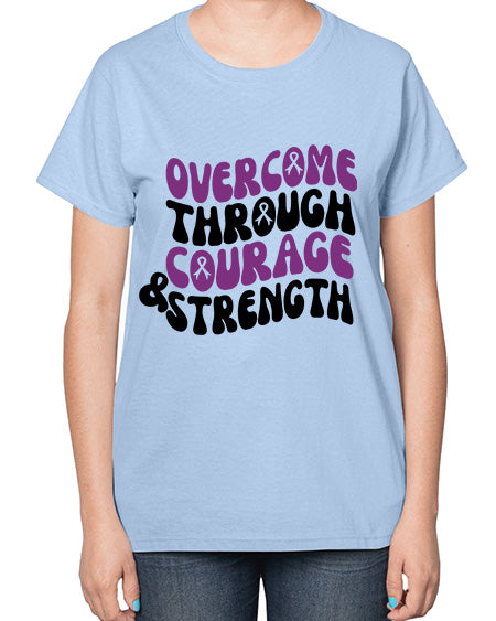 overcome through courage strength 204# - alzheimers- Ladies T-Shirt