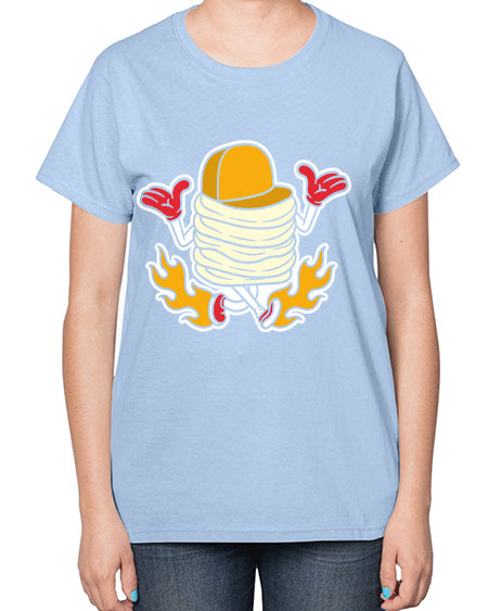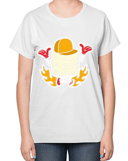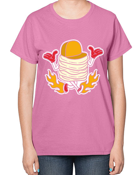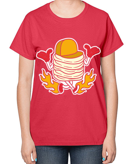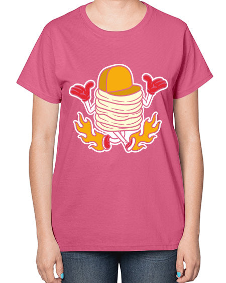 google-site-verification=jVrHOkW2AsgL_ozwUikqFQE6-Ke6U43Z8aLcUbXT5TE Pancake on fire 200# - cartoon food- Ladies T-Shirt – Tshirt Unlimited
