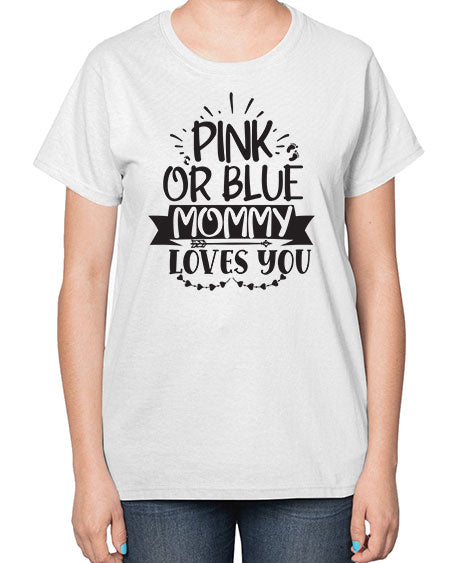 Pink or blue mommy loves you 435# - pregnancy- Ladies T-Shirt