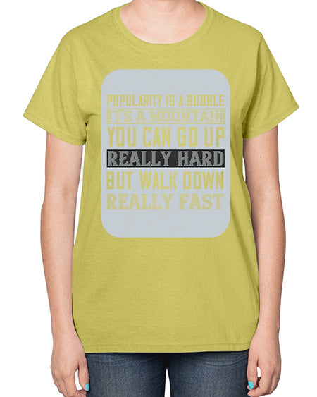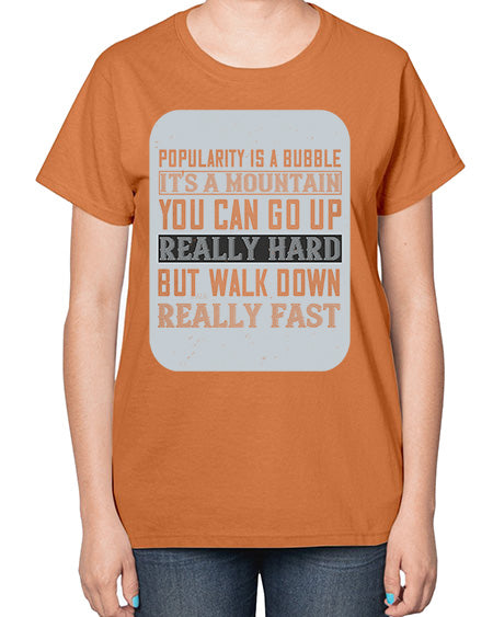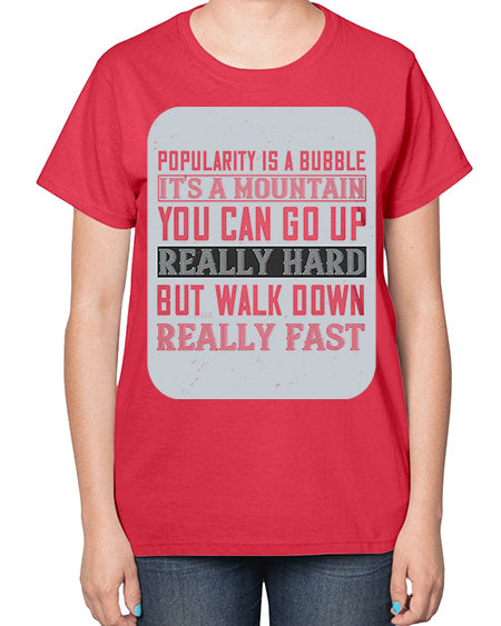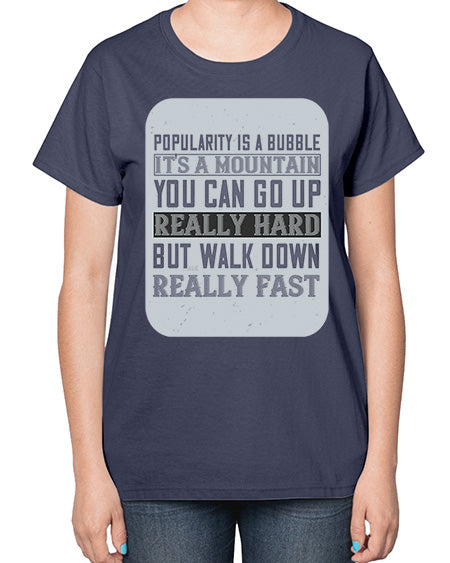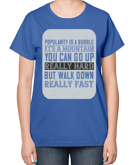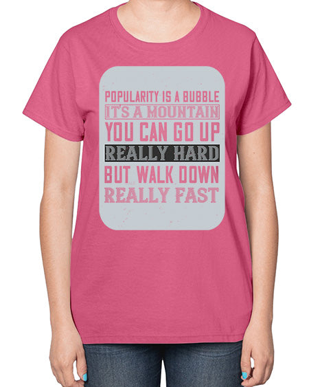 popularity is a bubble its a mountain you can go up really hard but walk down really fast 491# - walking- Ladies T-Shirt