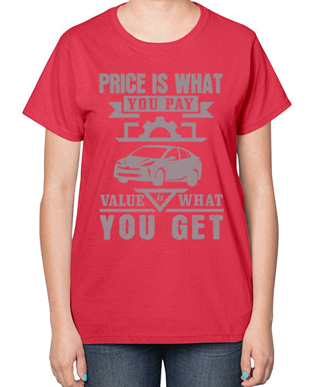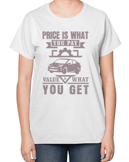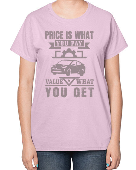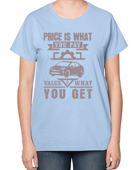 Price is what you pay Value is what you get 60# - car- Ladies T-Shirt