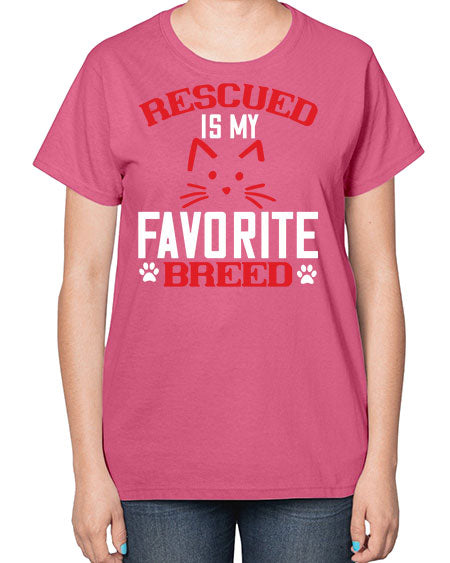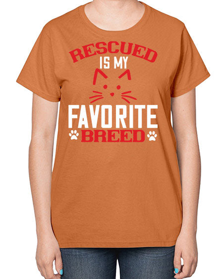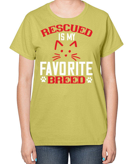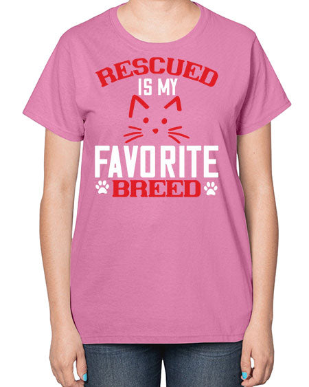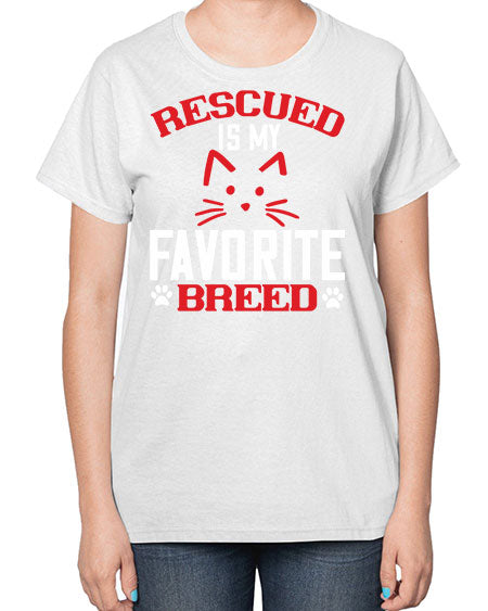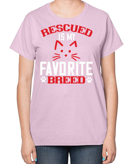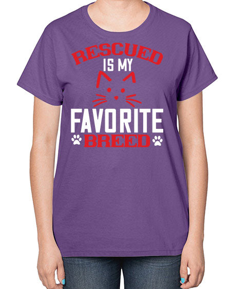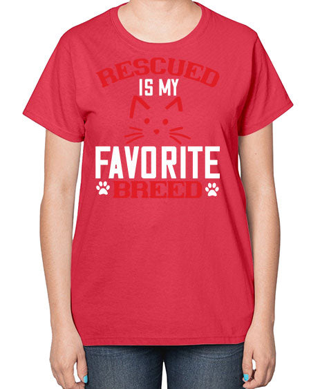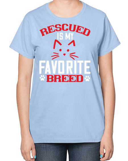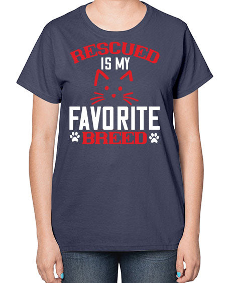 rescued is my favorite breed Style 114# - cats- Ladies T-Shirt