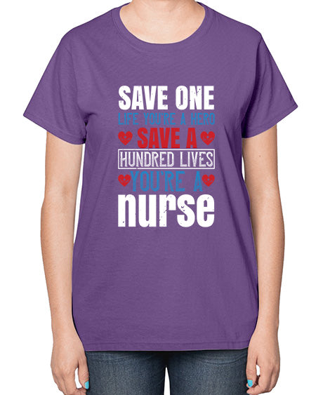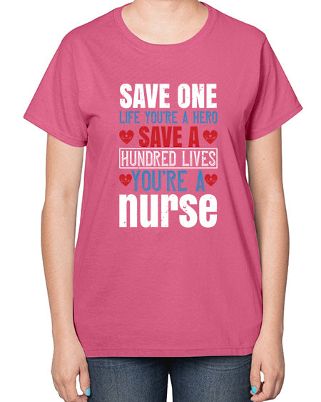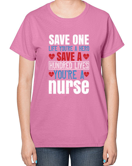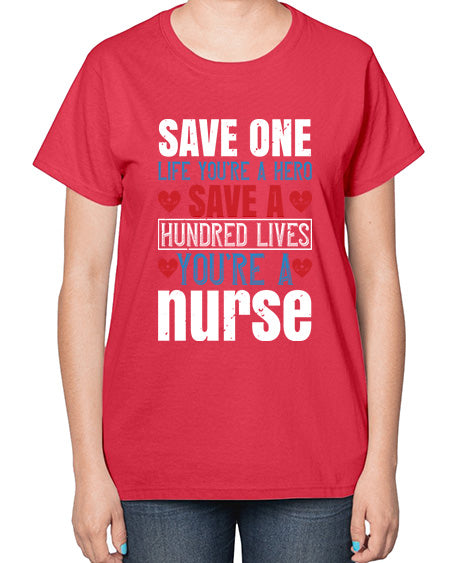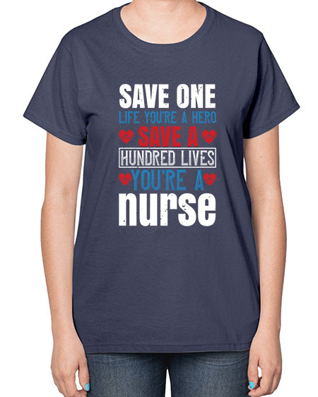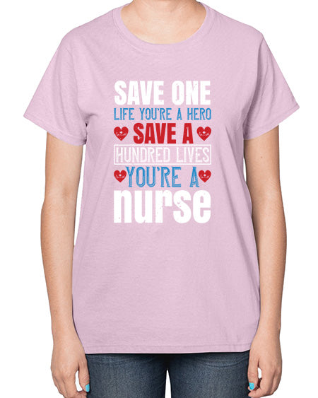 Save one life youre a hero Save a hundred lives youre a nurse Style 1368# - nurse- Ladies T-Shirt