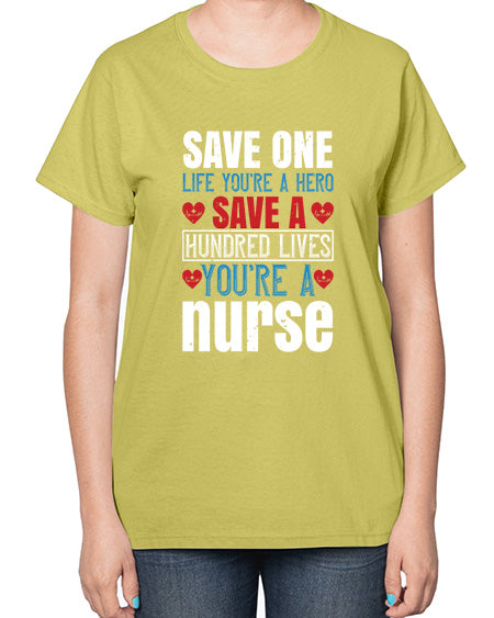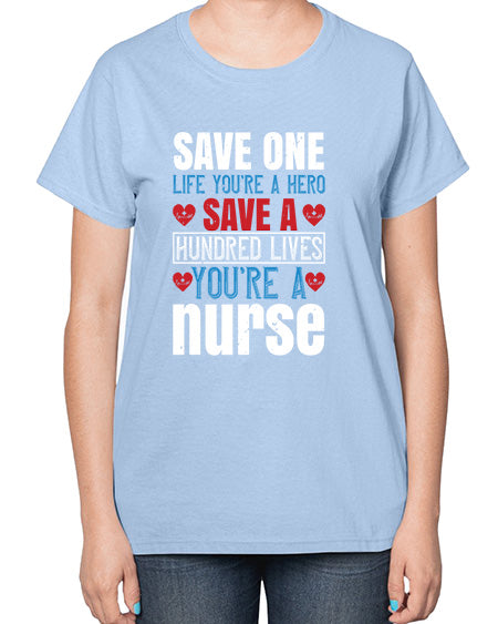 • Save one life youre a hero Save a hundred lives youre a nurse Style 1368# - nurse- Ladies T-Shirt