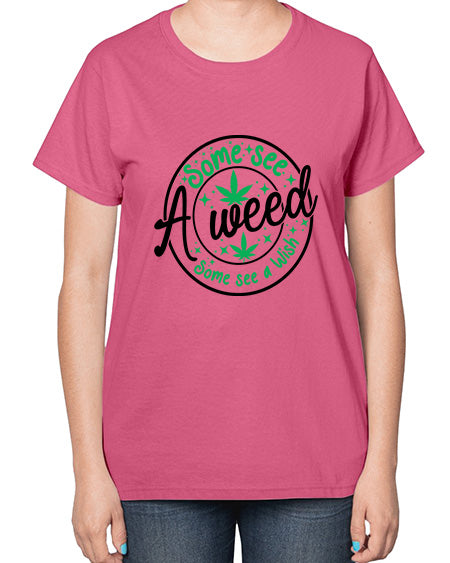 Some see a weed Some see a wish 1097# - graphic- Ladies T-Shirt