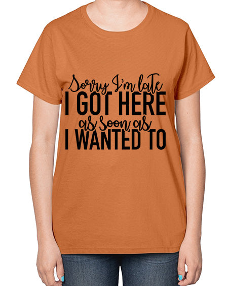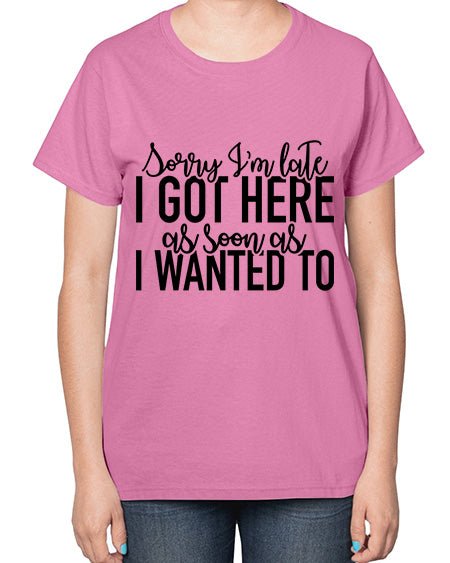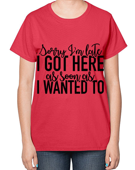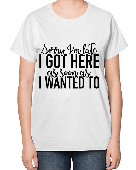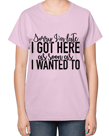 sorry im late i got here as soon as i wanted to 1100# - funny- Ladies T-Shirt