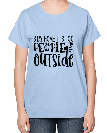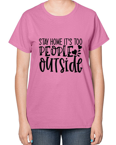 Stay Home Its Too People Outside 89# - funny- Ladies T-Shirt