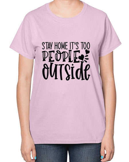 Stay Home Its Too People Outside 89# - graphic- Ladies T-Shirt